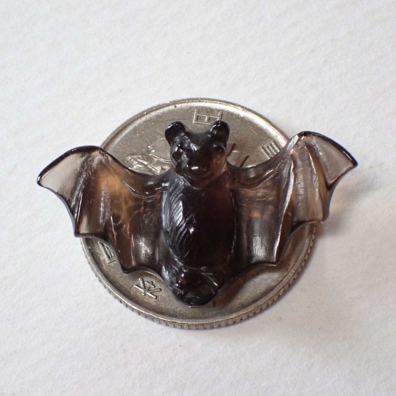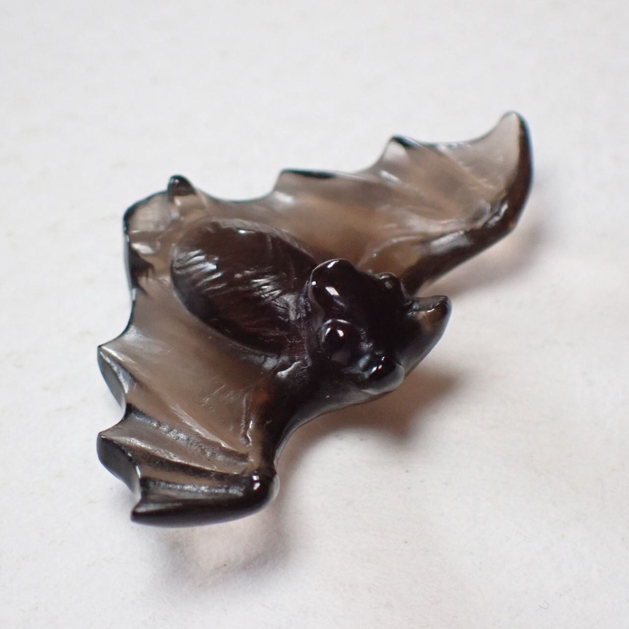 ブラジル産スモーキークオーツ コウモリ彫刻 置物 10.6ct 29.0mm*16.8mm*7.3mm