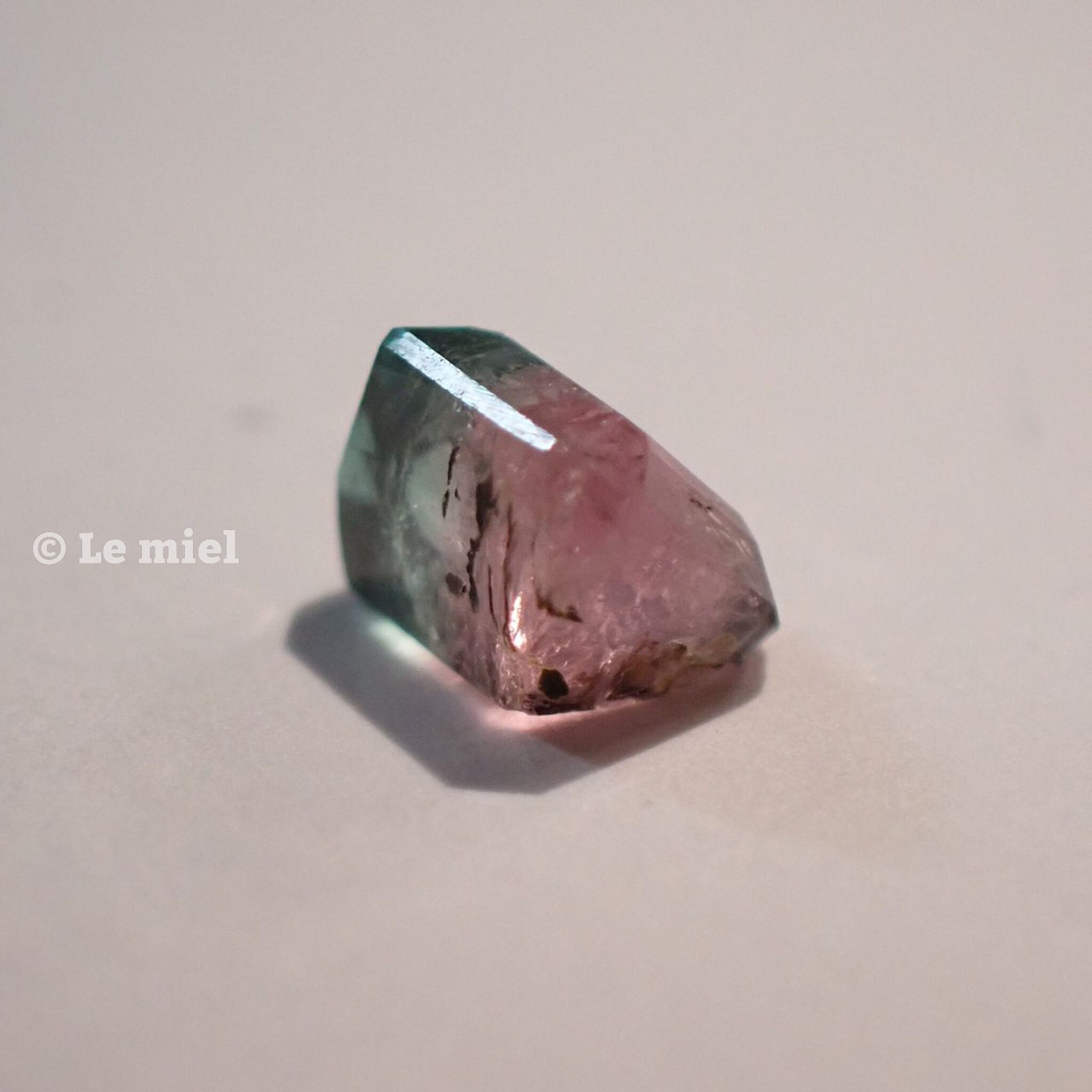 複数の色が一つの結晶の中に見られるバイカラートルマリンは同じものが二つとない個性的な石です。