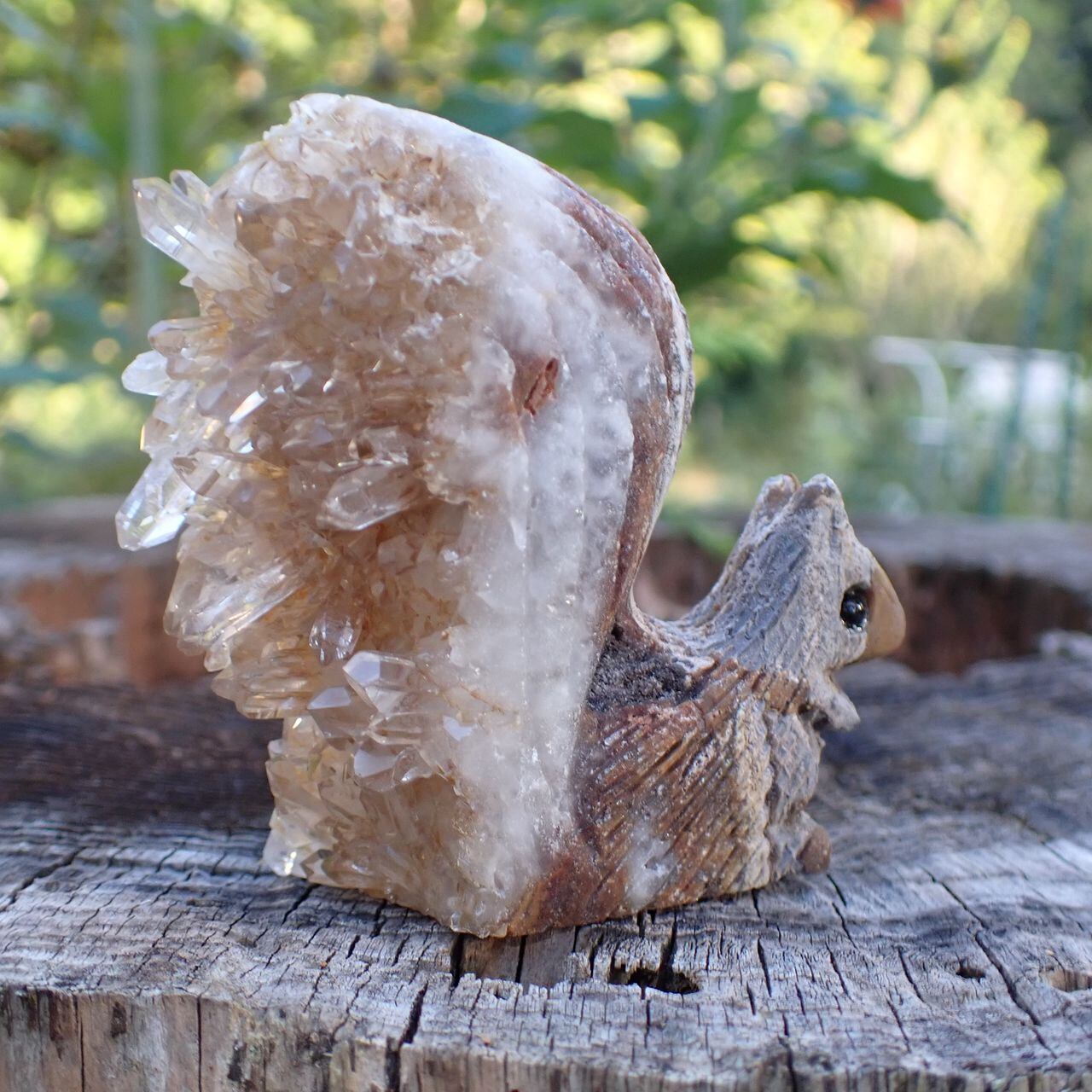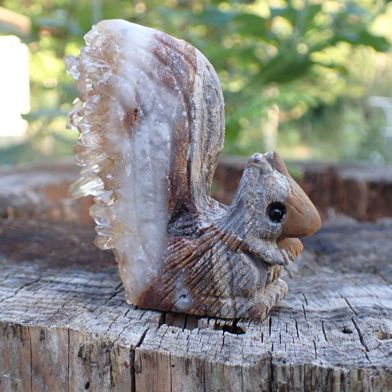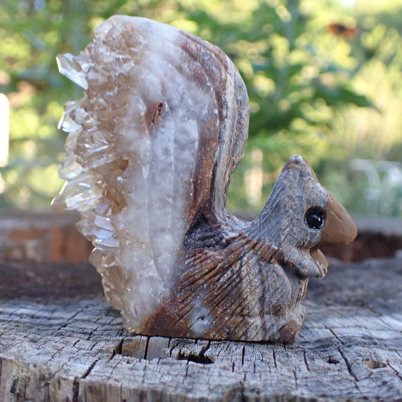 天然石水晶クラスタの手彫り置物リスO 置物 104g 63mm*22mm*44mm