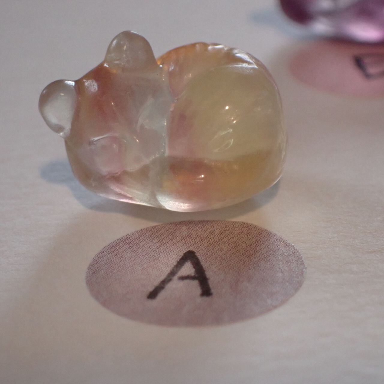 眠り猫フローライト彫刻 4.5g前後 高さ13mm前後