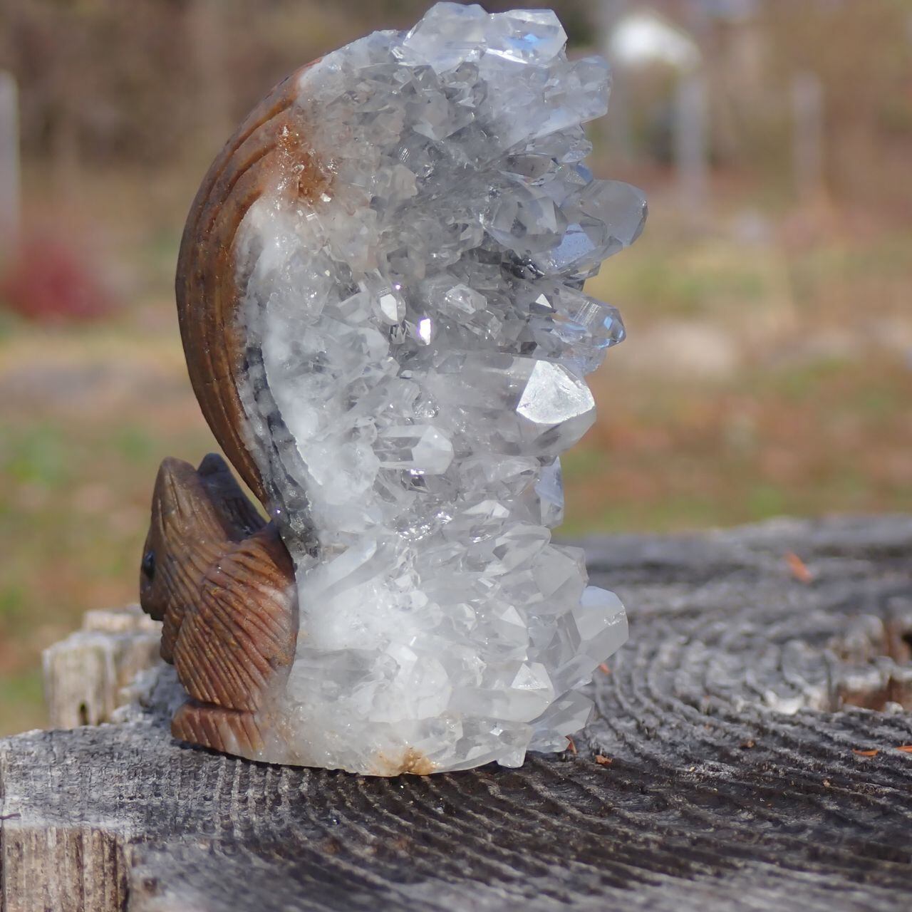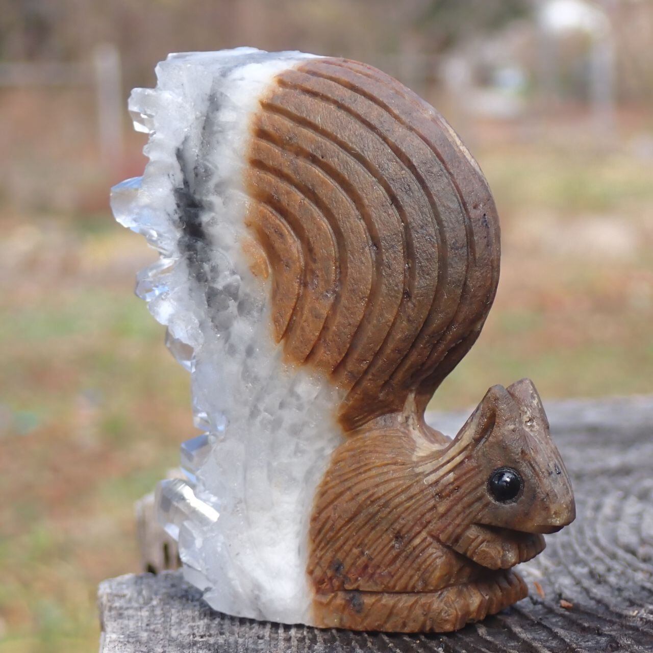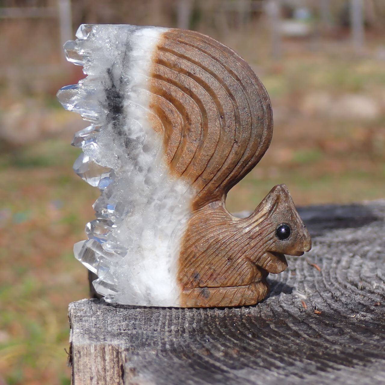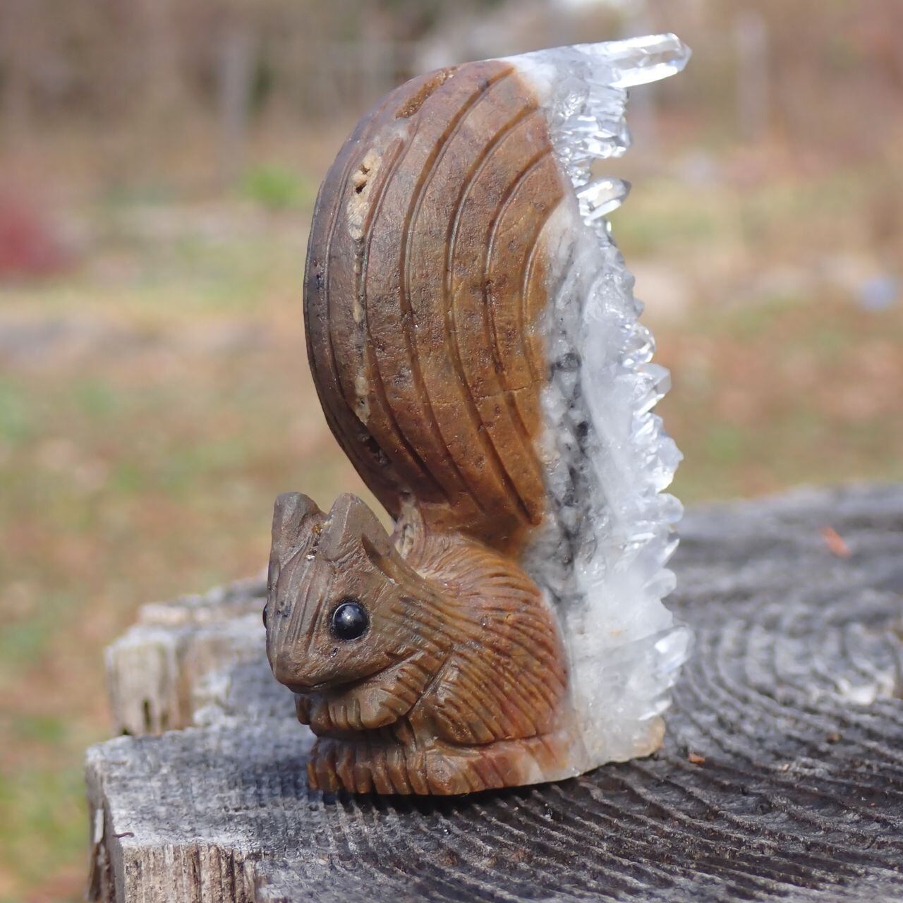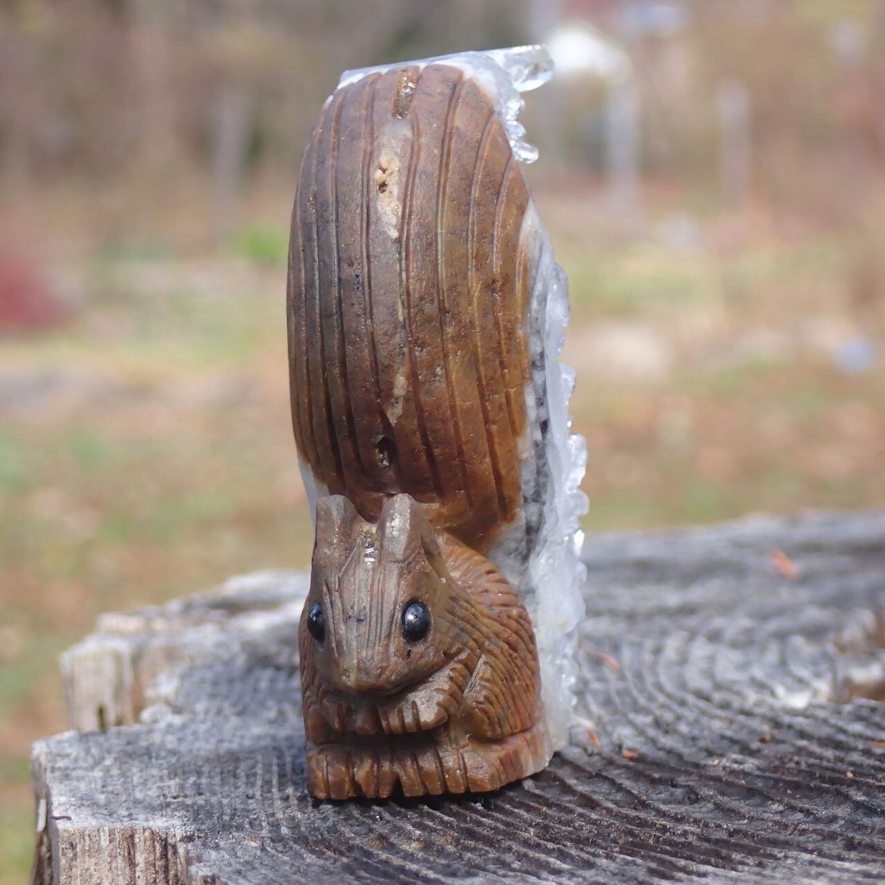 【通常販売】天然石水晶クラスタの手彫り置物リス2Z 置物 117gct 67mm*60mm*25mm