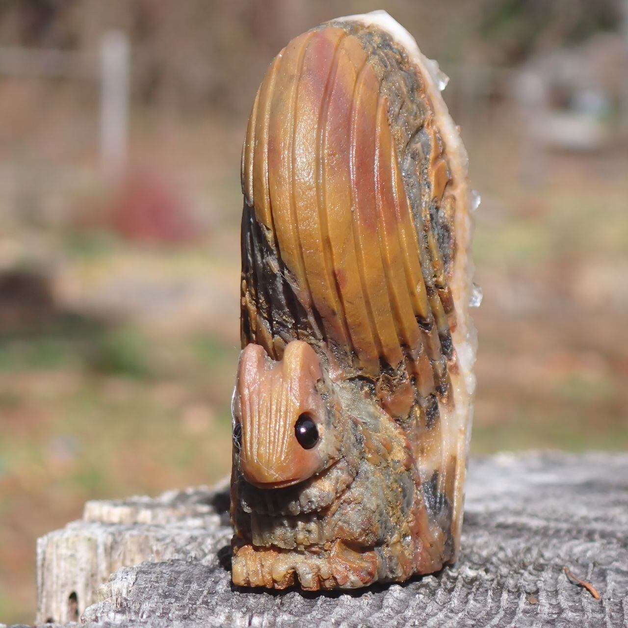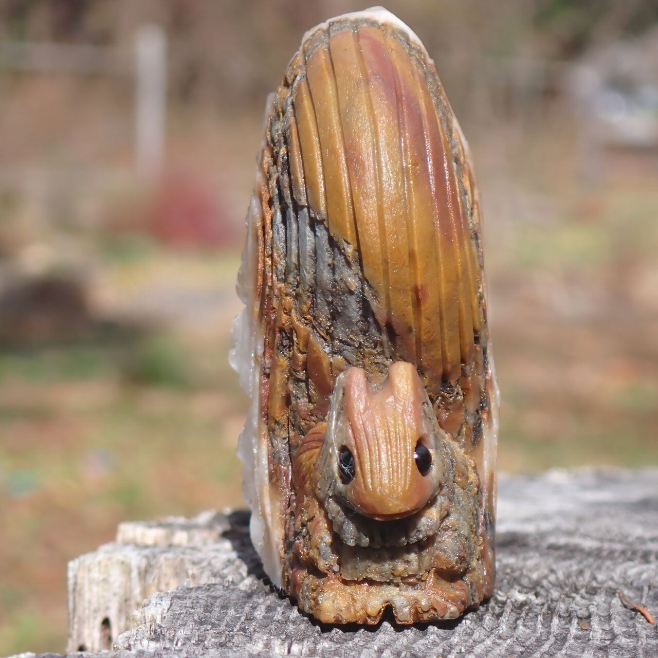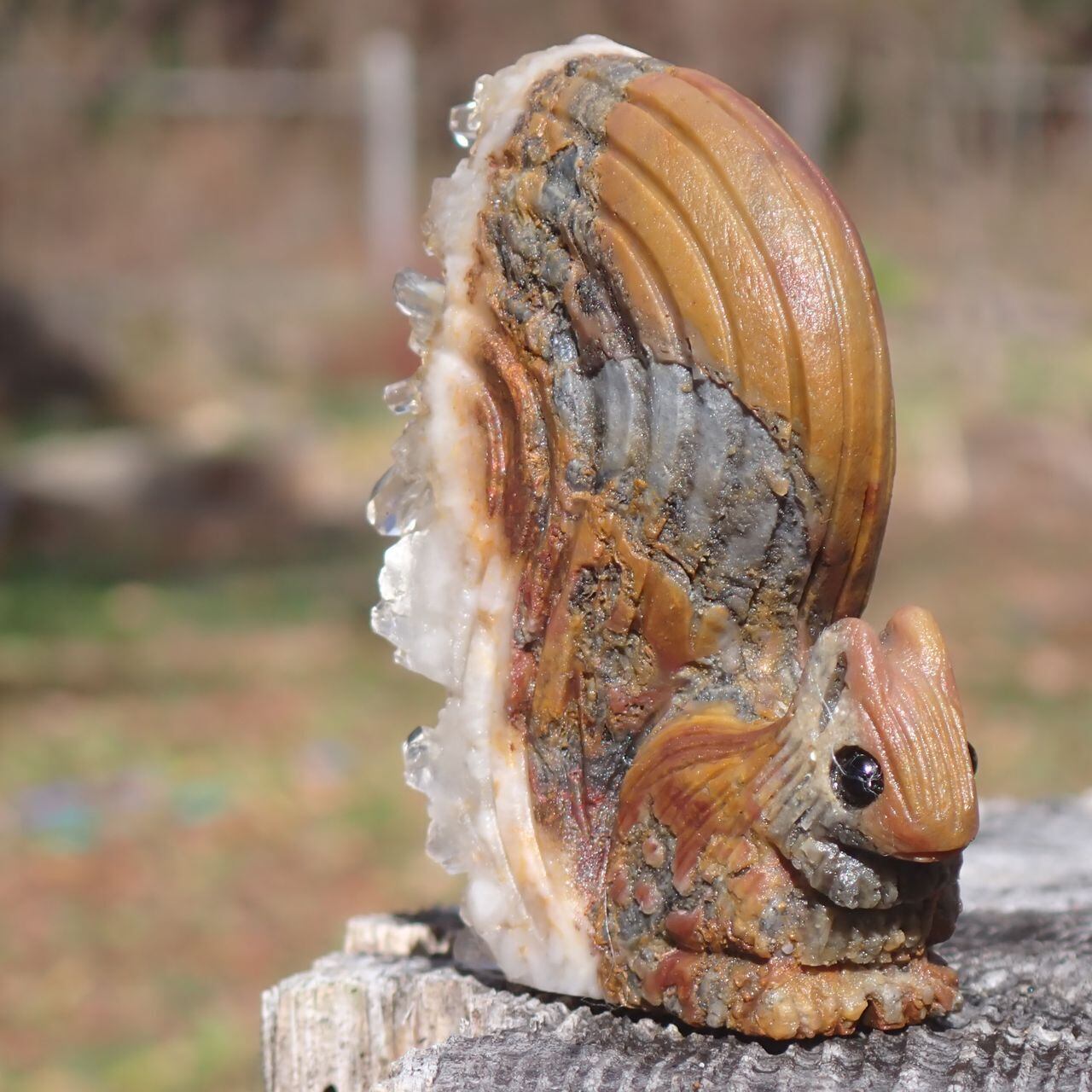 【通常販売】天然石水晶クラスタの手彫り置物リス3J 置物 104g 64mm*50mm*25mm