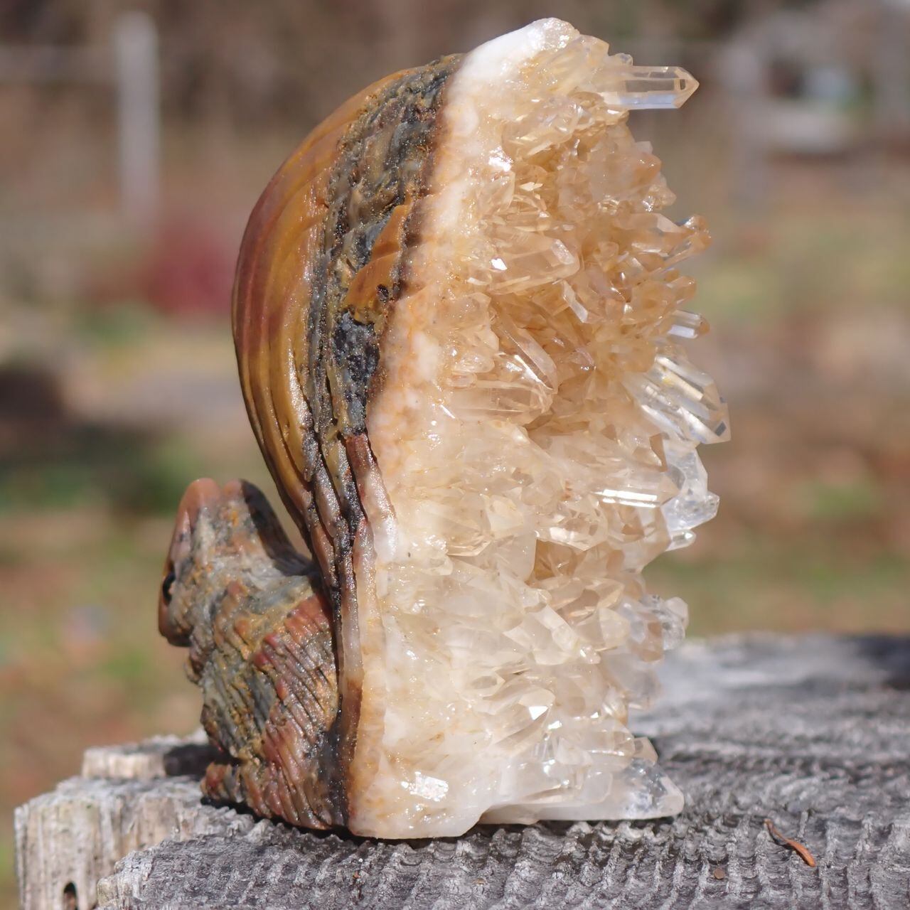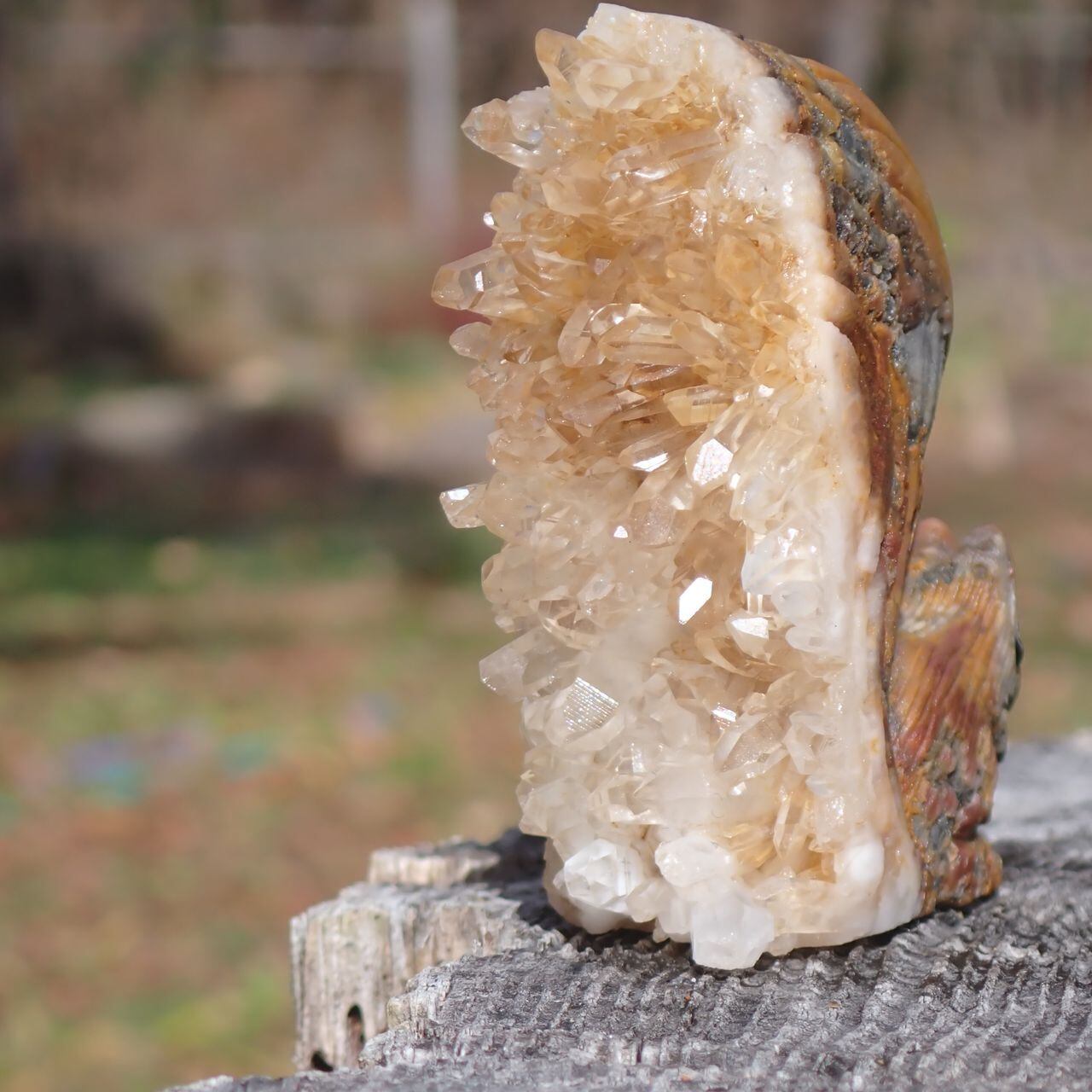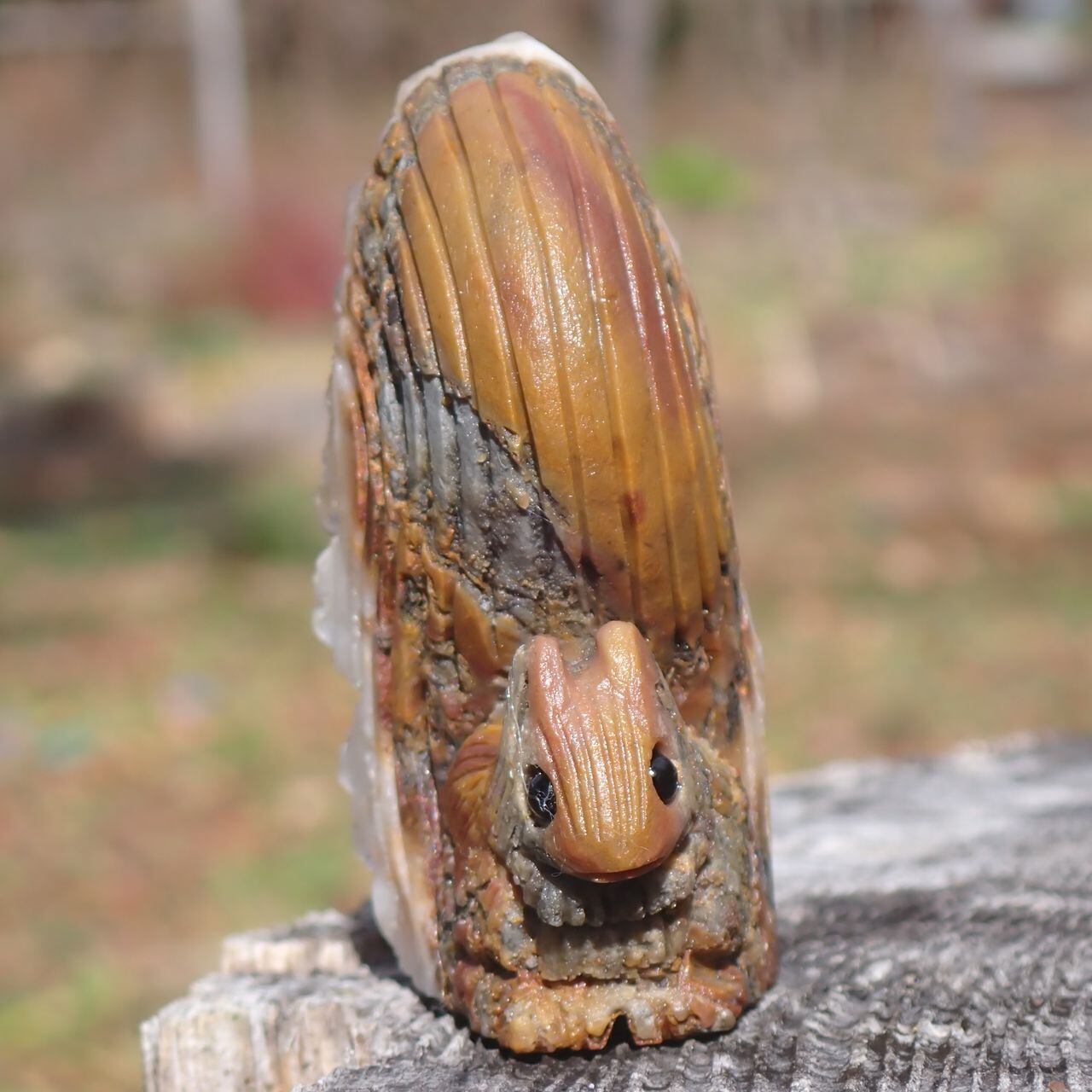 【通常販売】天然石水晶クラスタの手彫り置物リス3J 置物 104g 64mm*50mm*25mm