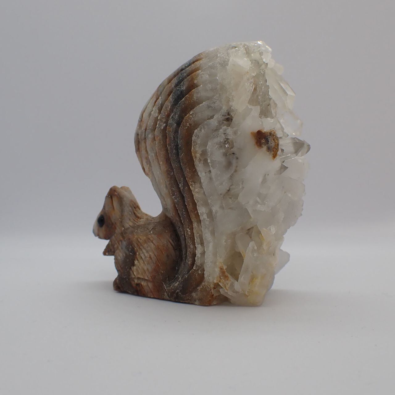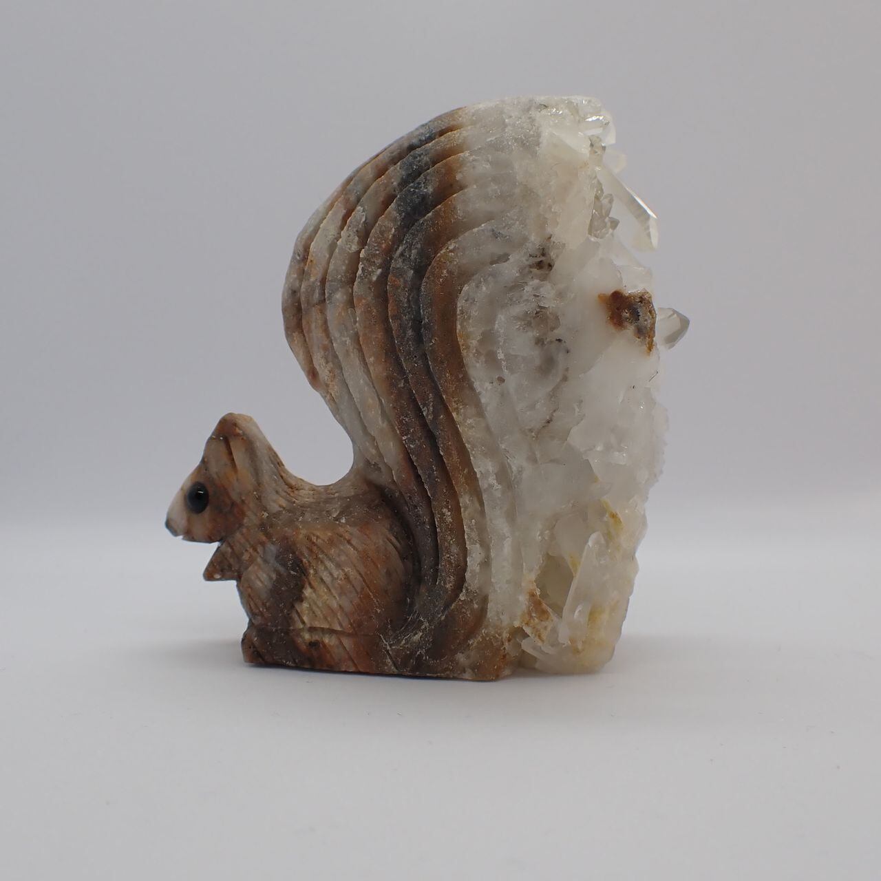 天然石水晶クラスタの手彫りリス3V 置物 136g 68mm*60mm*28mm