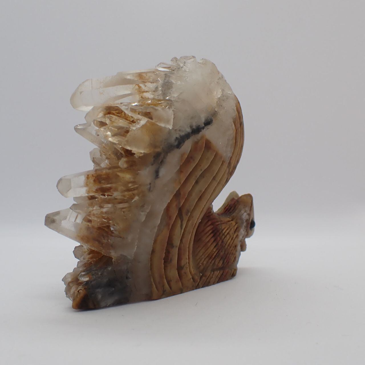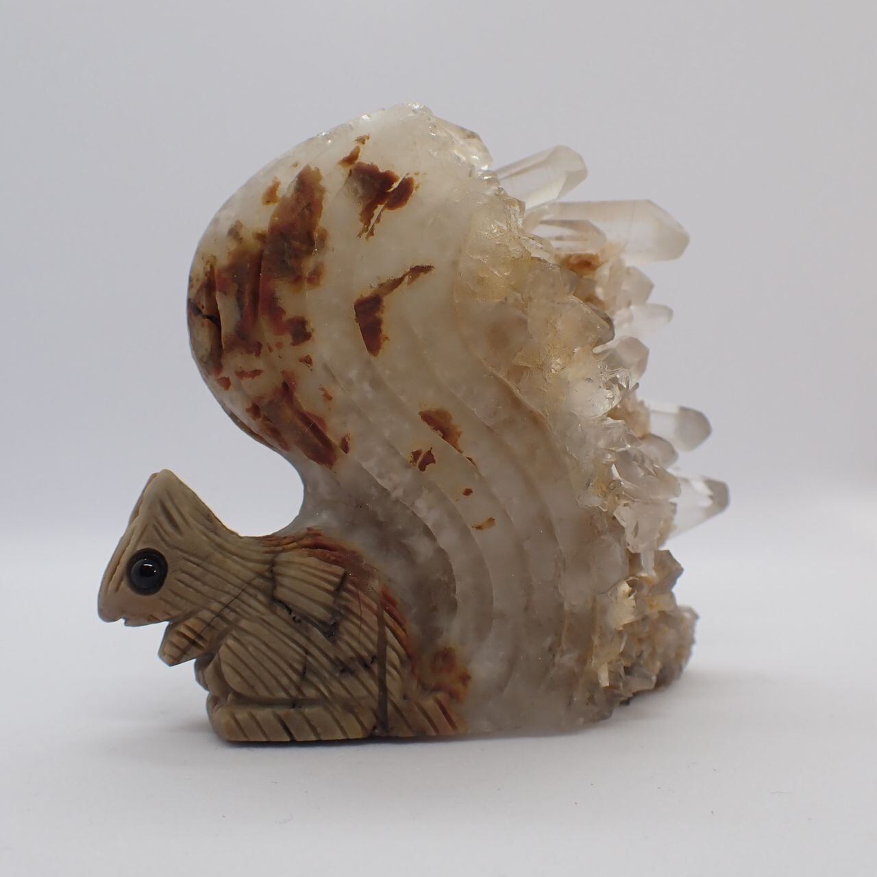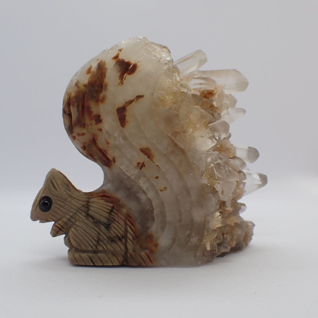 天然石水晶クラスタの手彫りリス3U 置物 141g 70mm*63mm*30mm