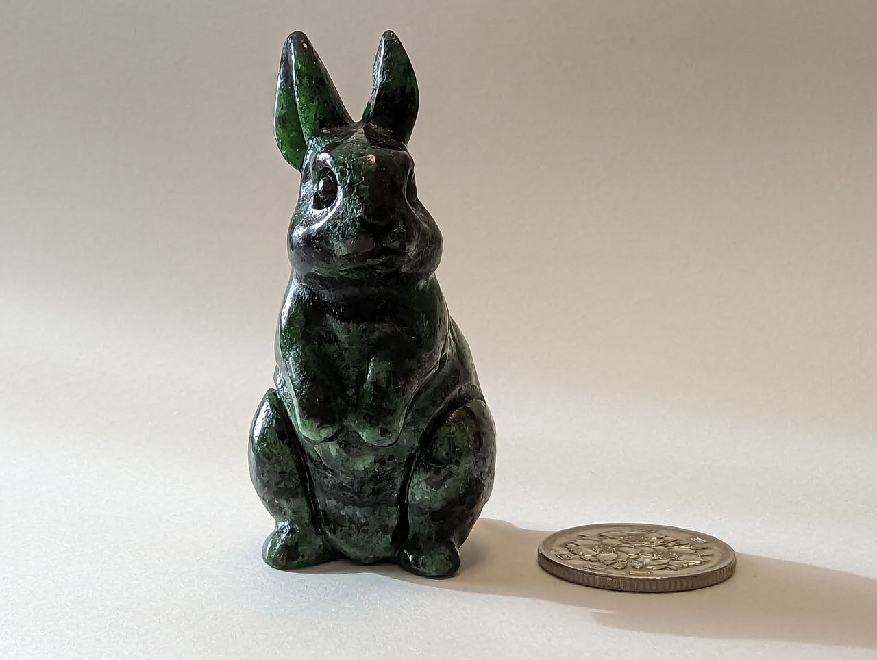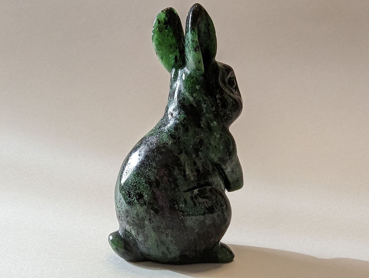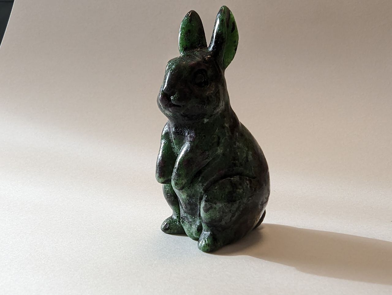 【おやつセット】ルビーインゾイサイトの手彫り立ちうさぎLサイズ-C 置物 62g 59.5mm*29mm*31.7mm