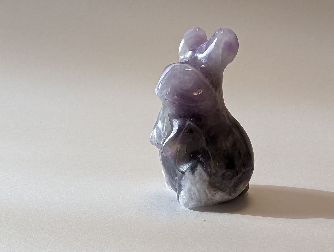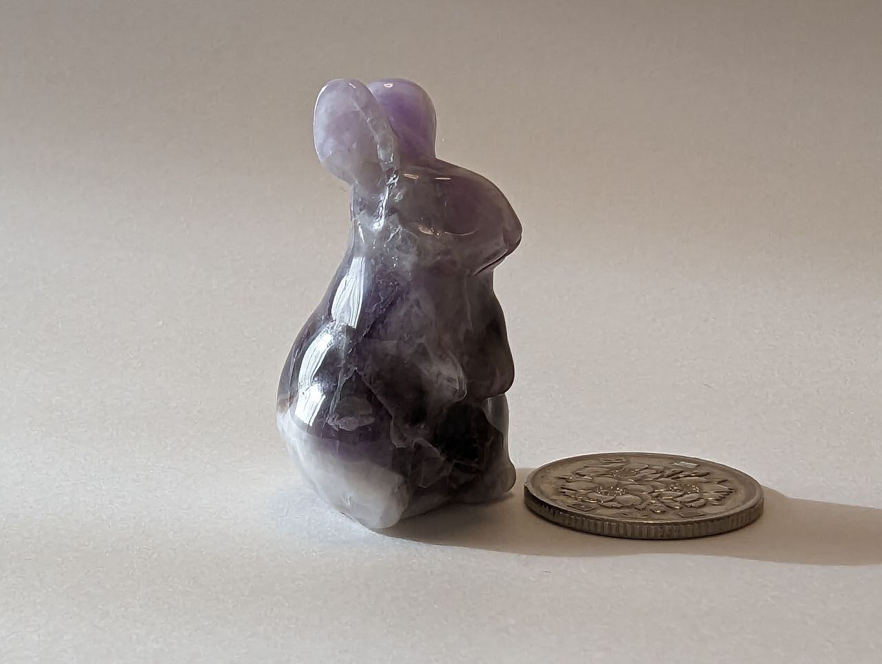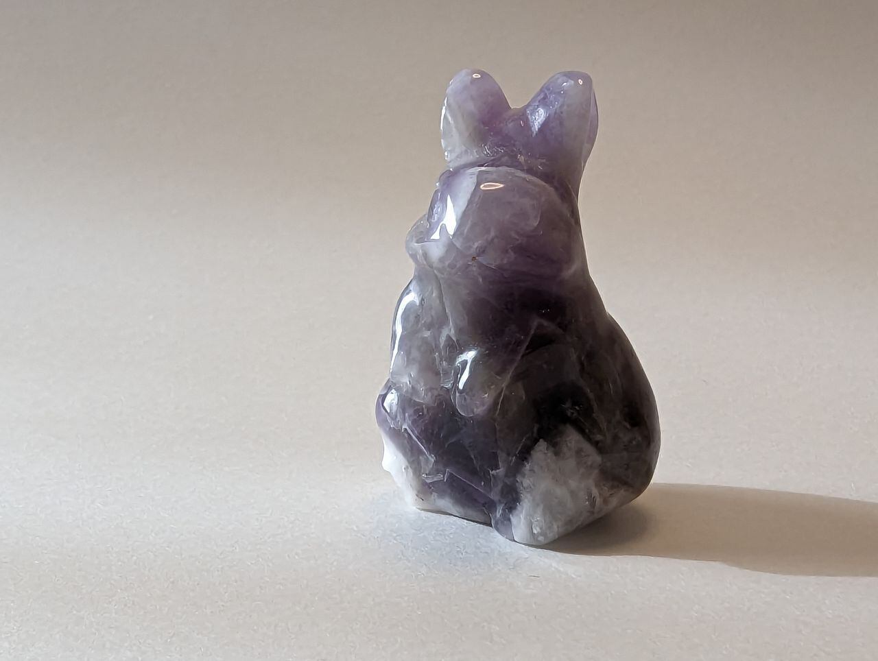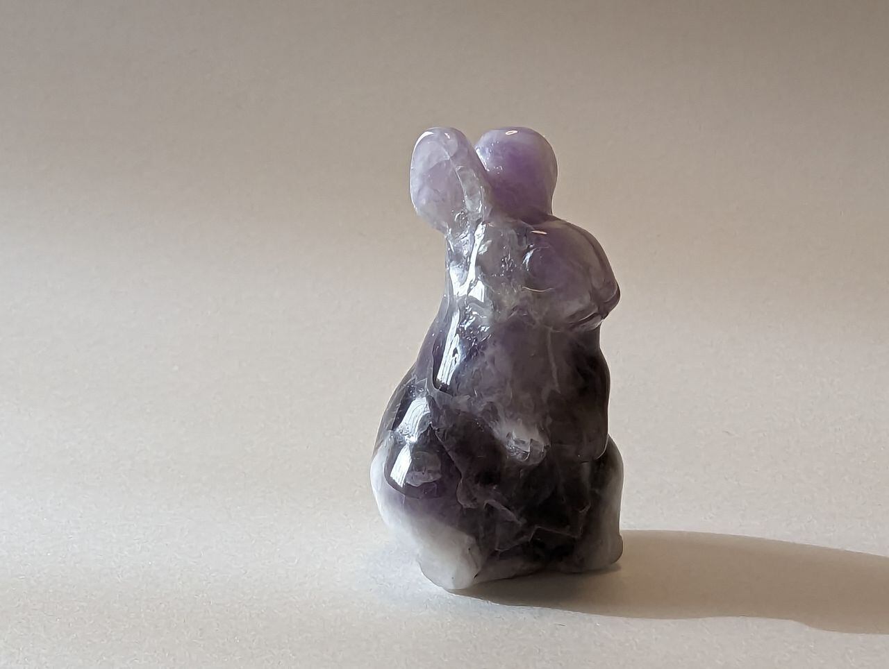 アメジストの手彫り立ちうさぎMサイズ 置物 23g前後 約40mm*23mm*22mm