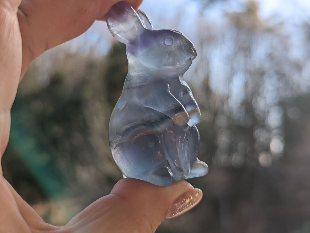 【おやつセット】フローライトの手彫り立ちうさぎLサイズ 置物 68.4g 60mm*30mm*30mm | Le miel