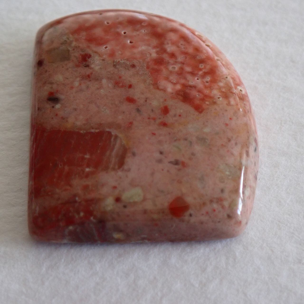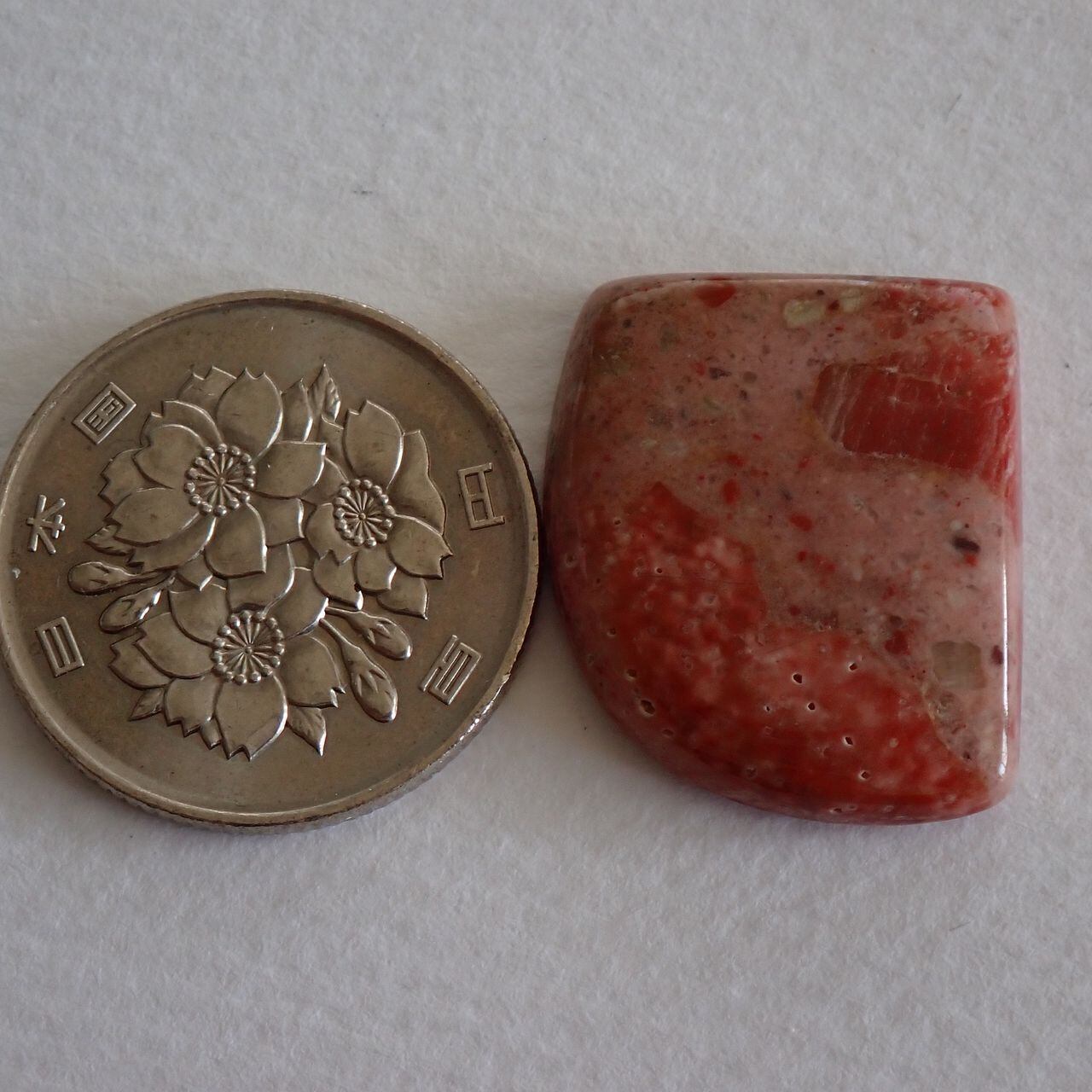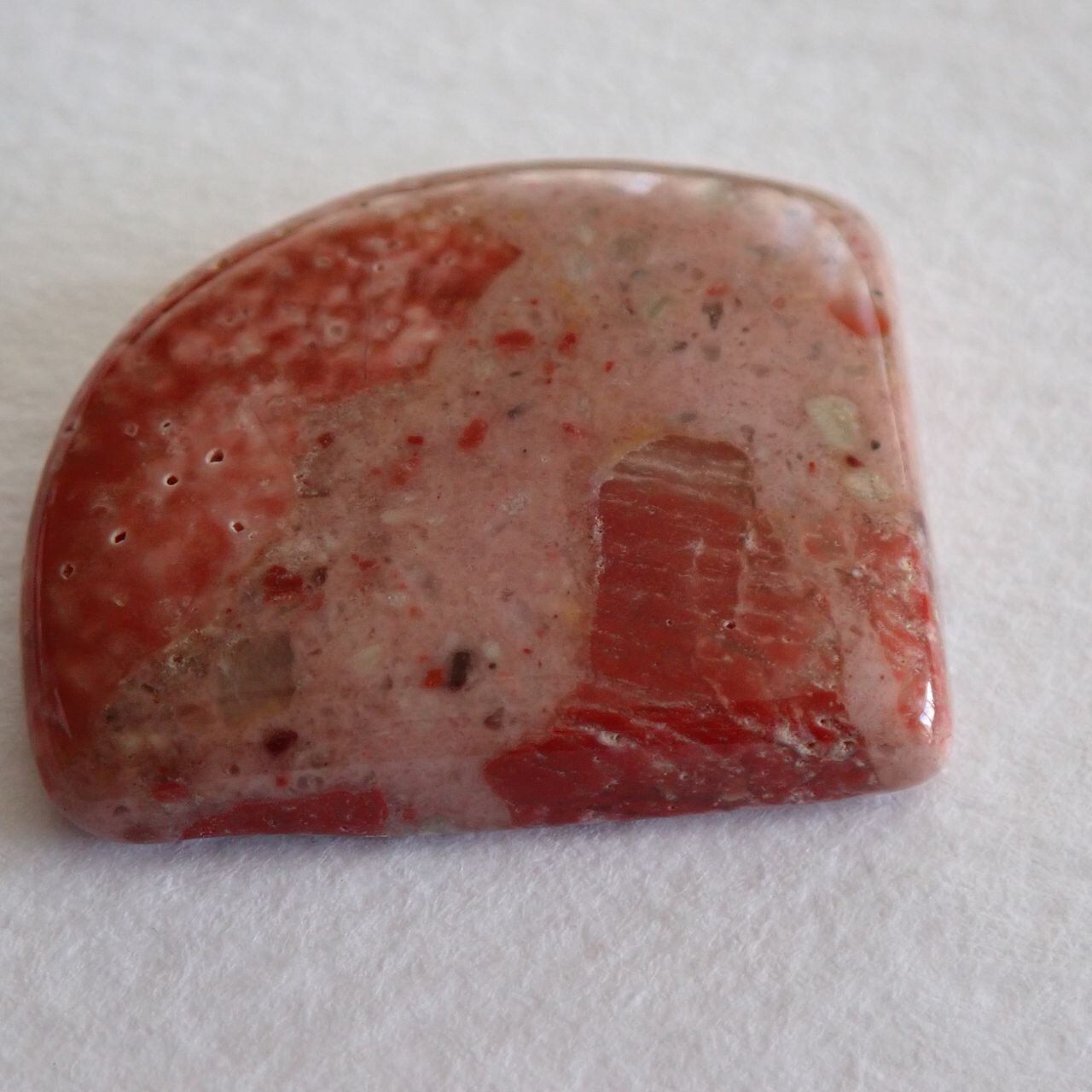 チャートは堆積物により色が変わりますが、今回の石は朱色とピンクが混ざったような可愛いお色味です。