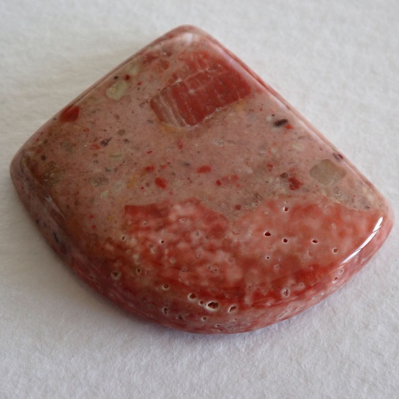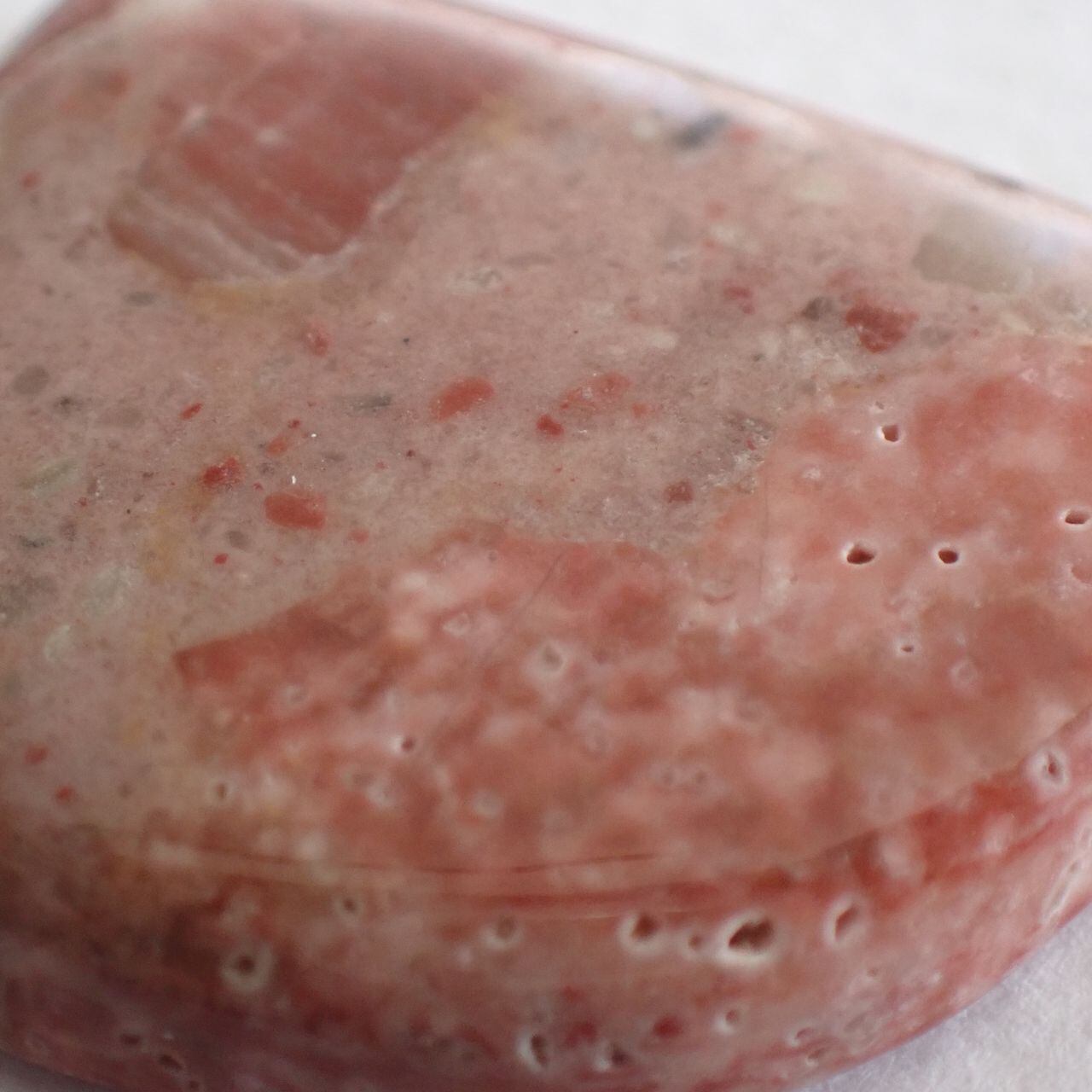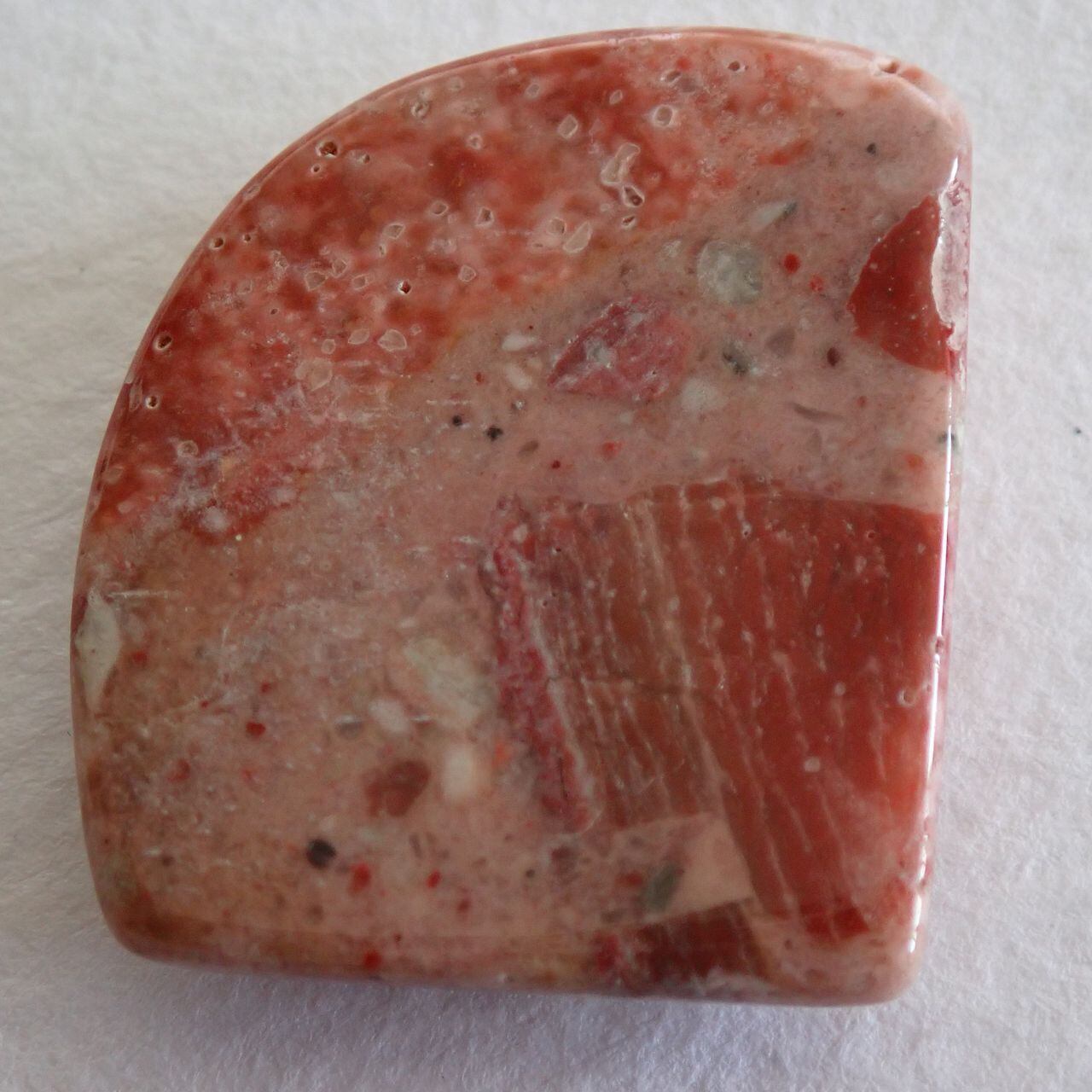 チャートは堆積物により色が変わりますが、今回の石は朱色とピンクが混ざったような可愛いお色味です。