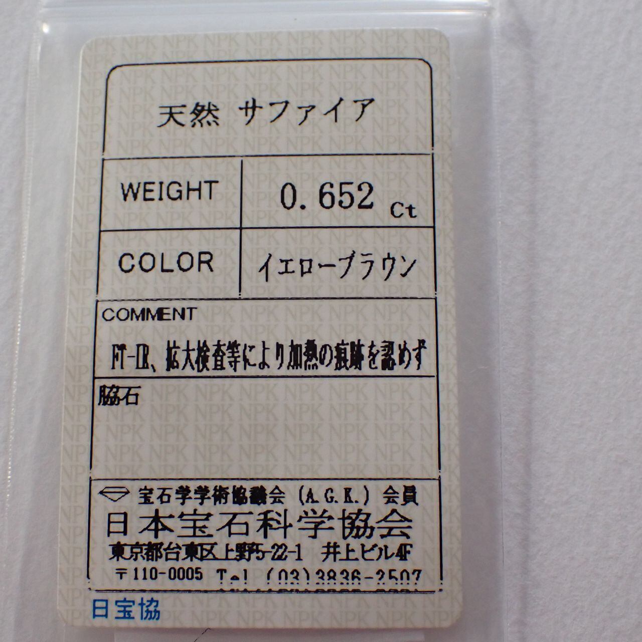 ソ付きタンザニア・タンガ産非加熱イエローブラウンサファイア オーバルカットルース 0.65ct 5.8 x 4.5 x 2.5 mm