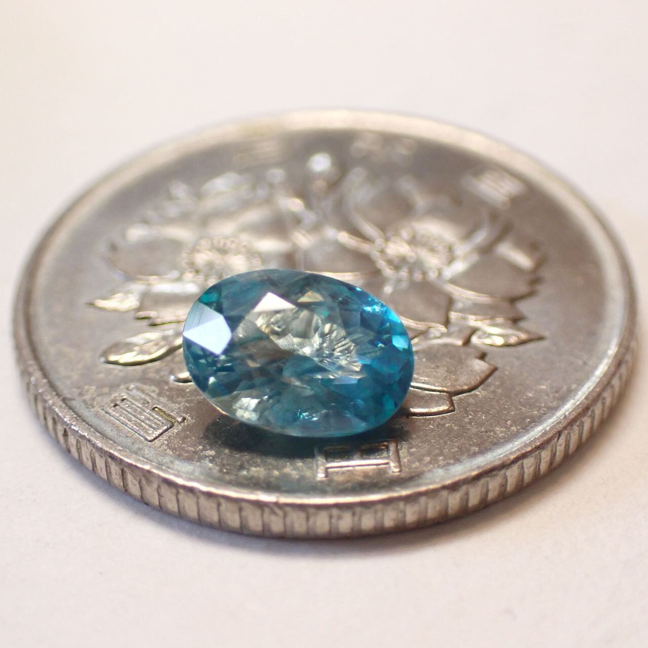 カンボジア産ブルージルコン(微蛍光) オーバルカットルース 1.46ct 7.4mm*5.2mm*3.4mm