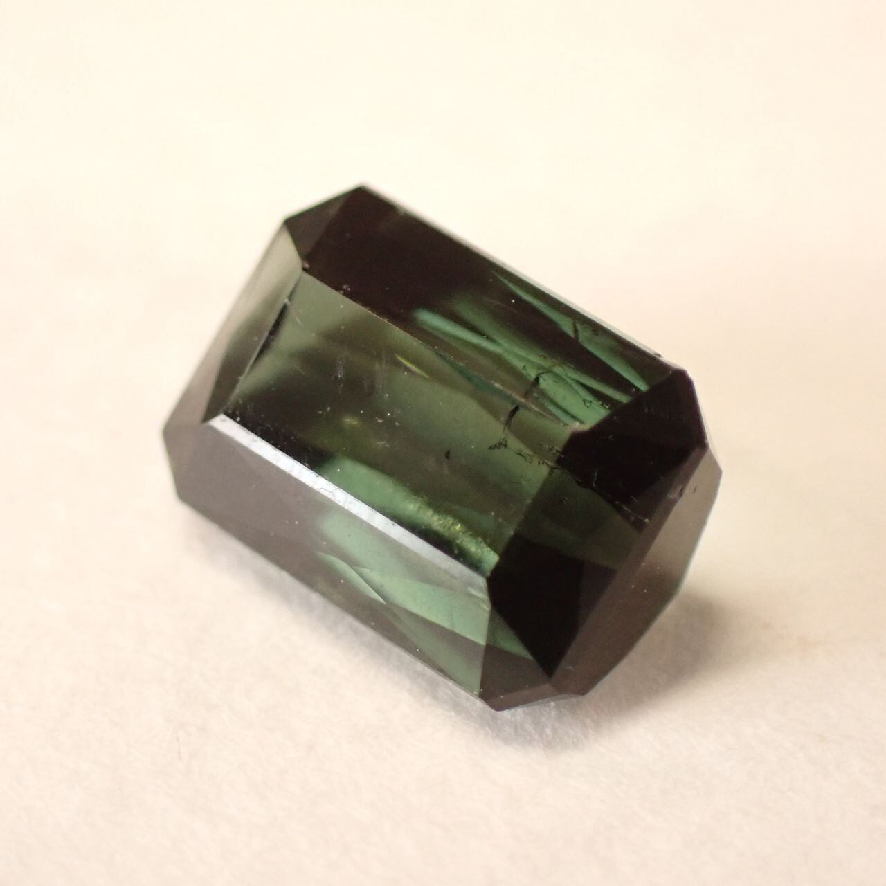 色彩豊富なトルマリンですが、こちらは角度によってグレイッシュグリーンからフォレストグリーンのカッコイイお色が楽しめる魅力的な石です!