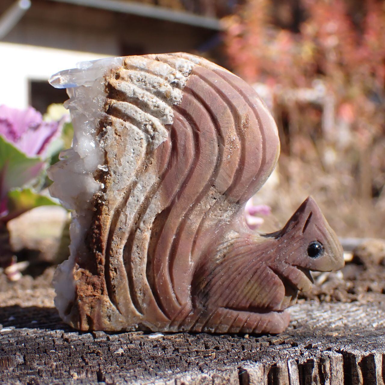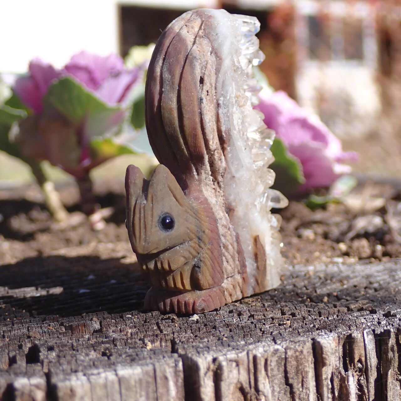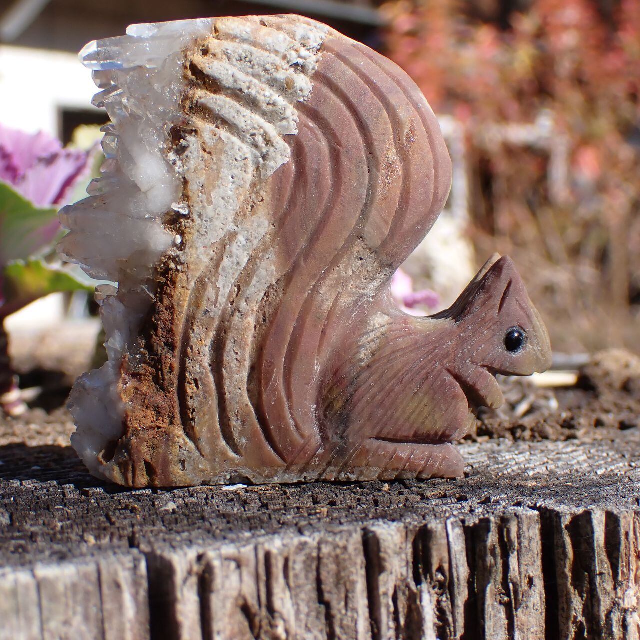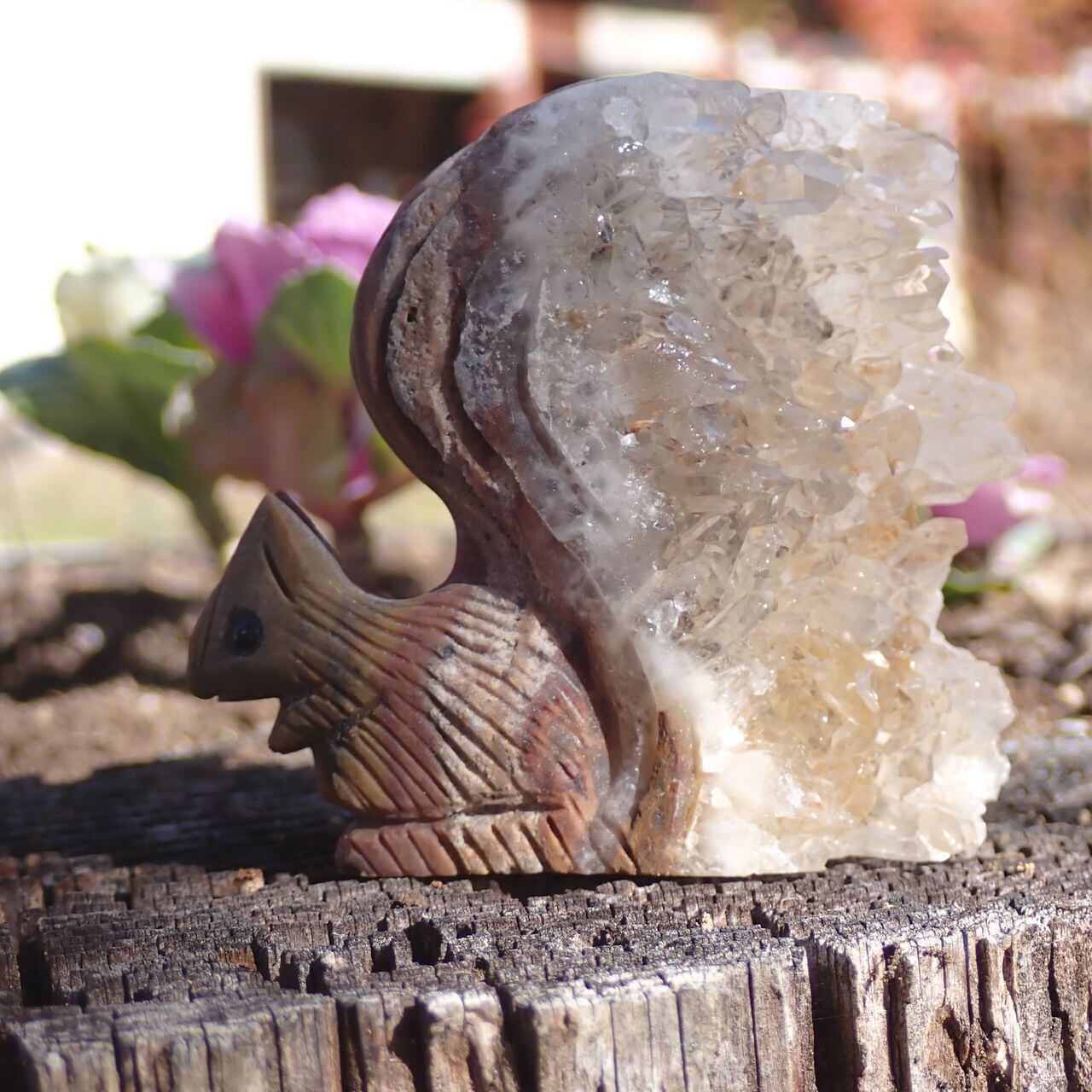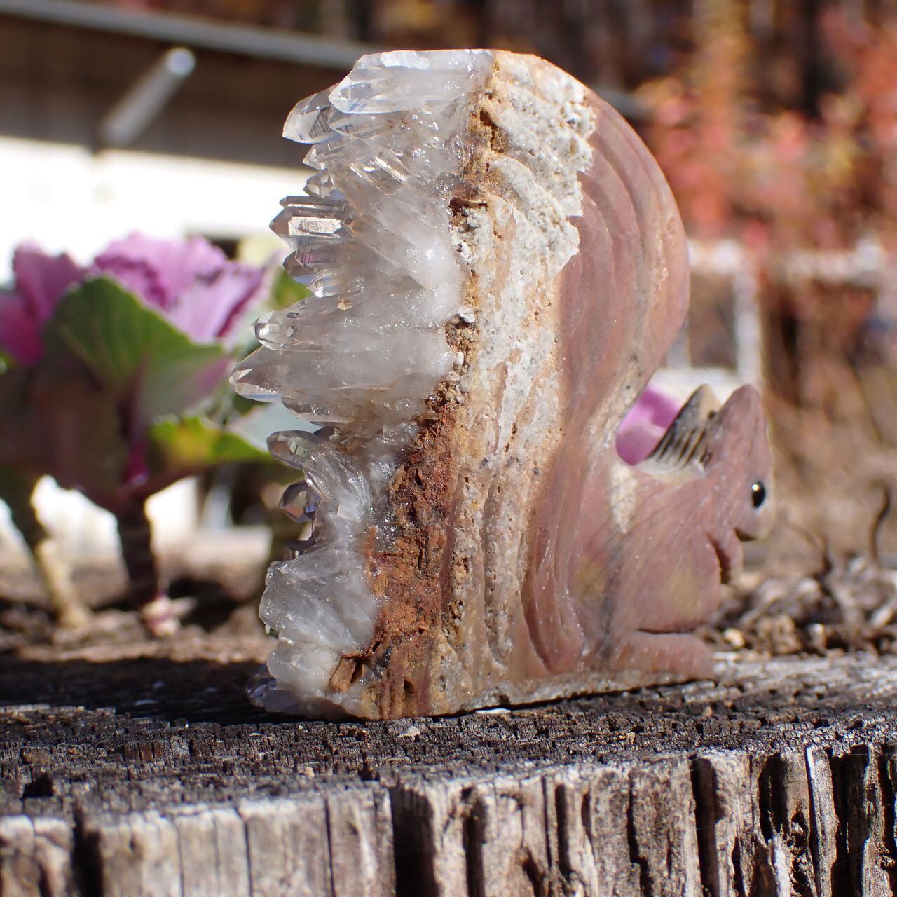 天然石水晶クラスタの手彫りリス6A 置物 77g 55mm*60mm*20mm