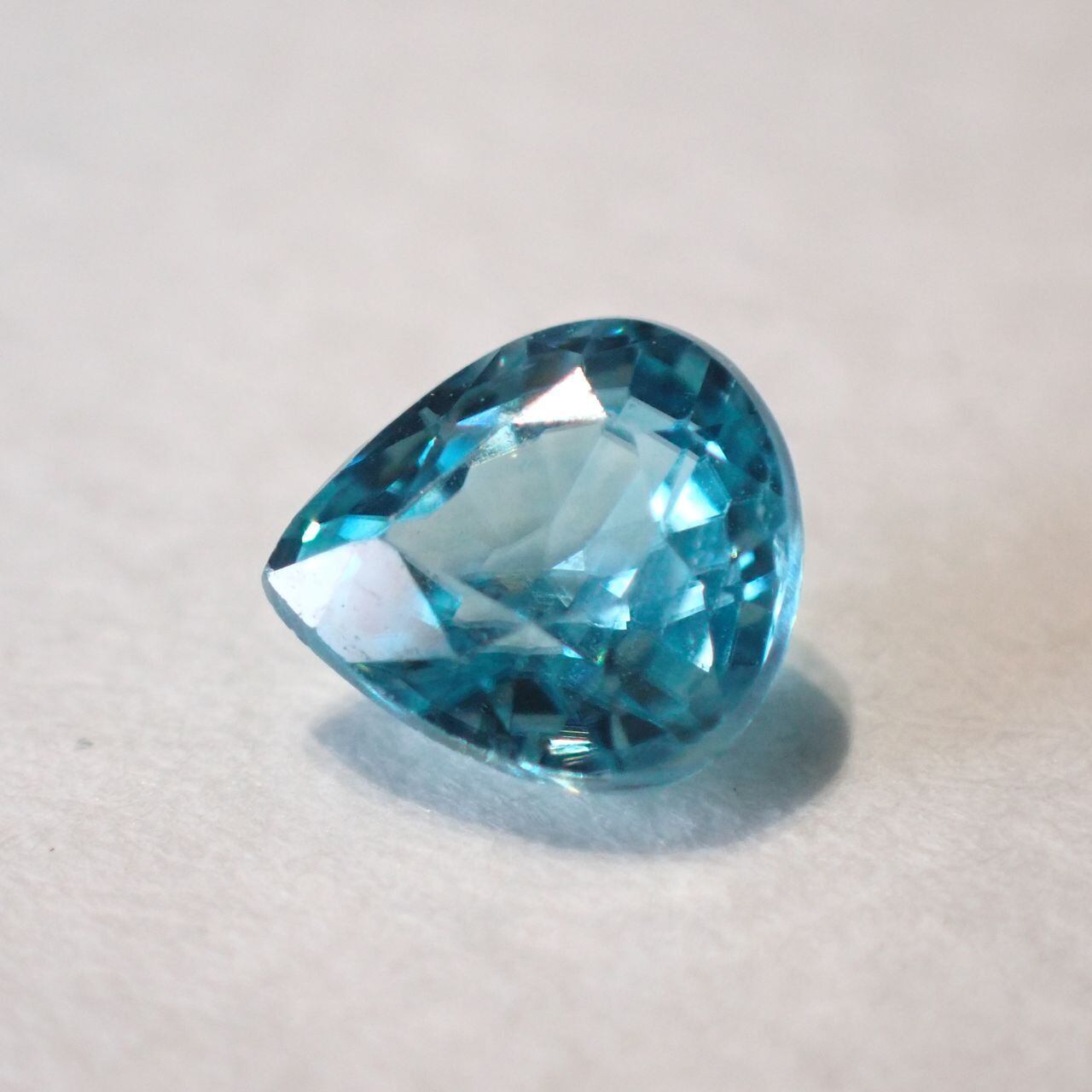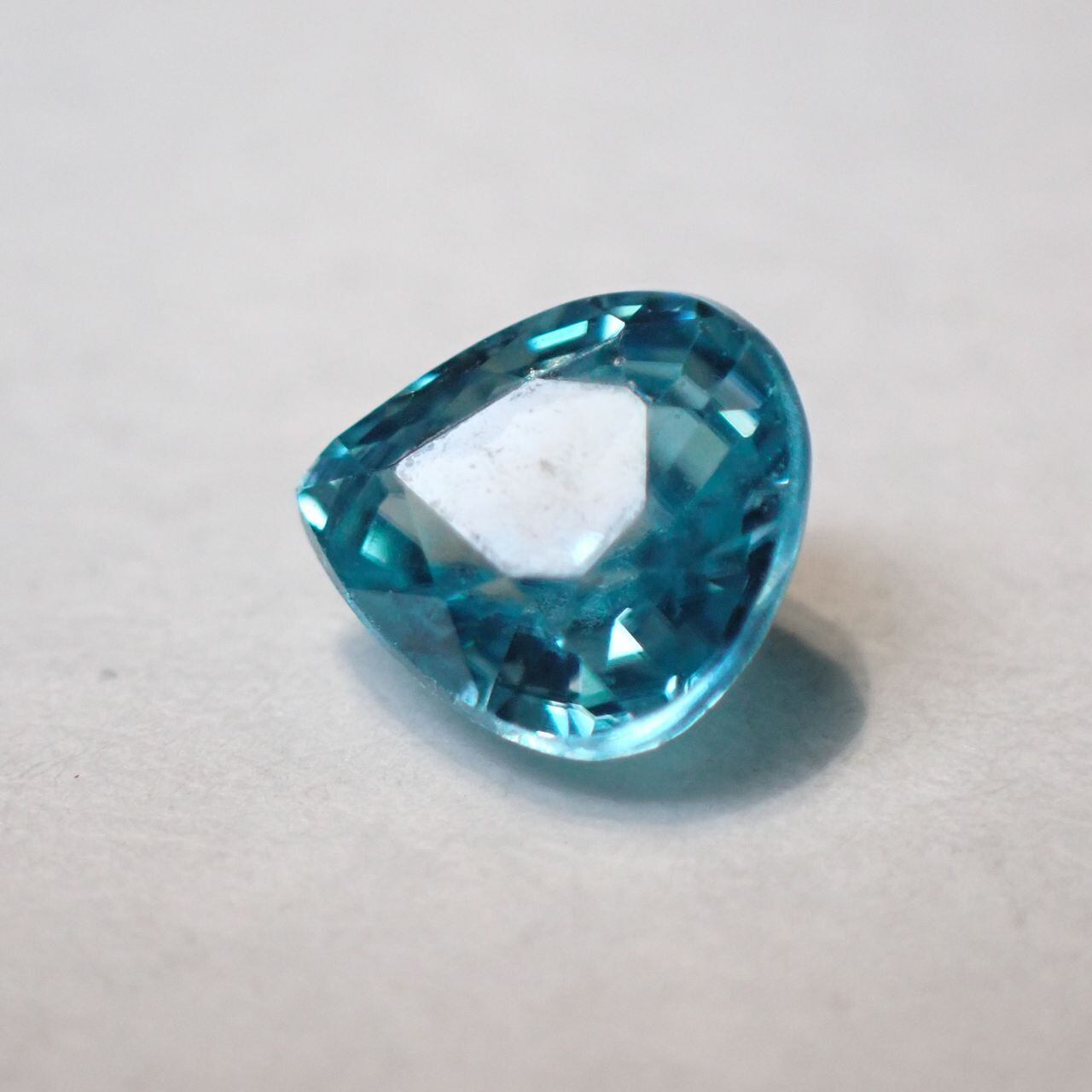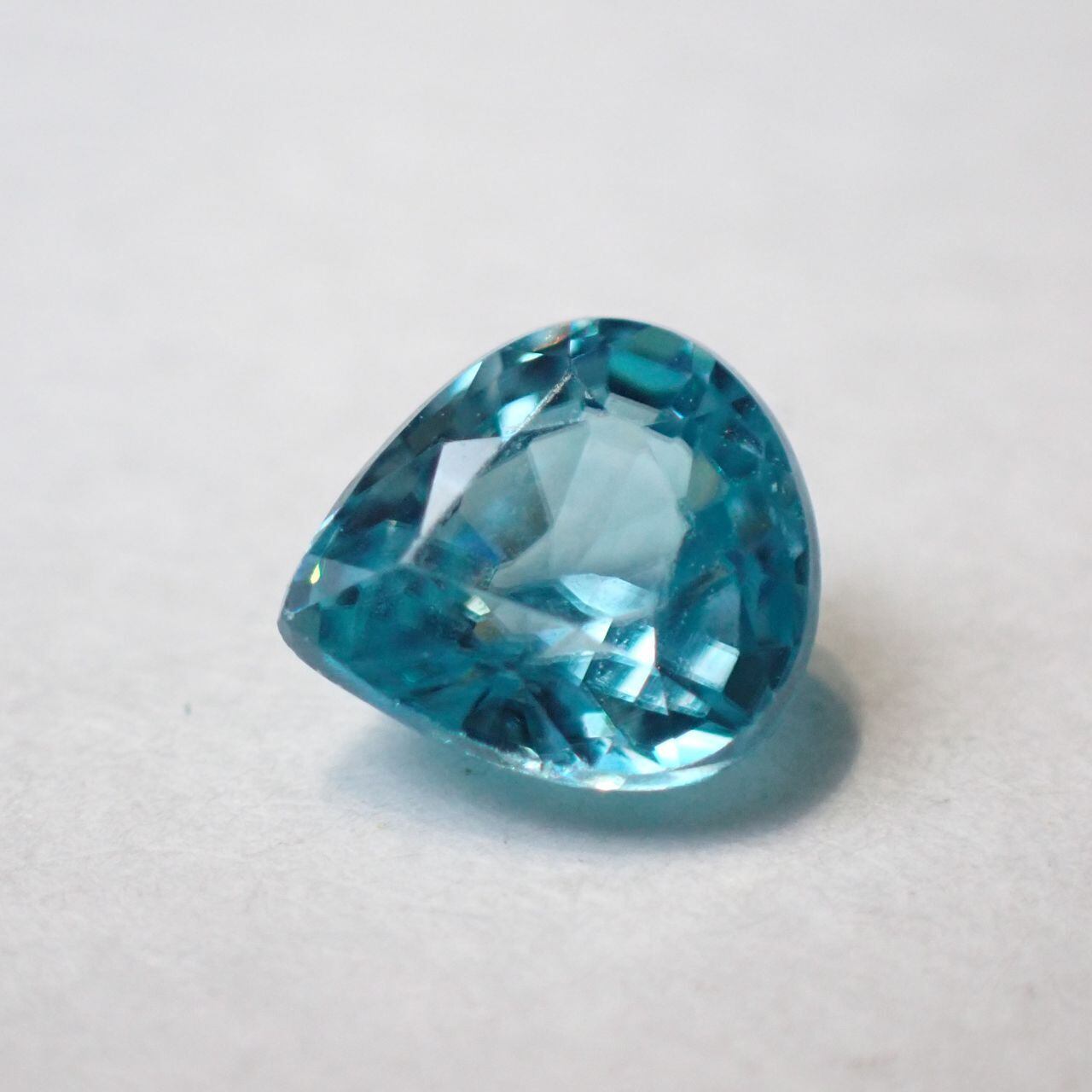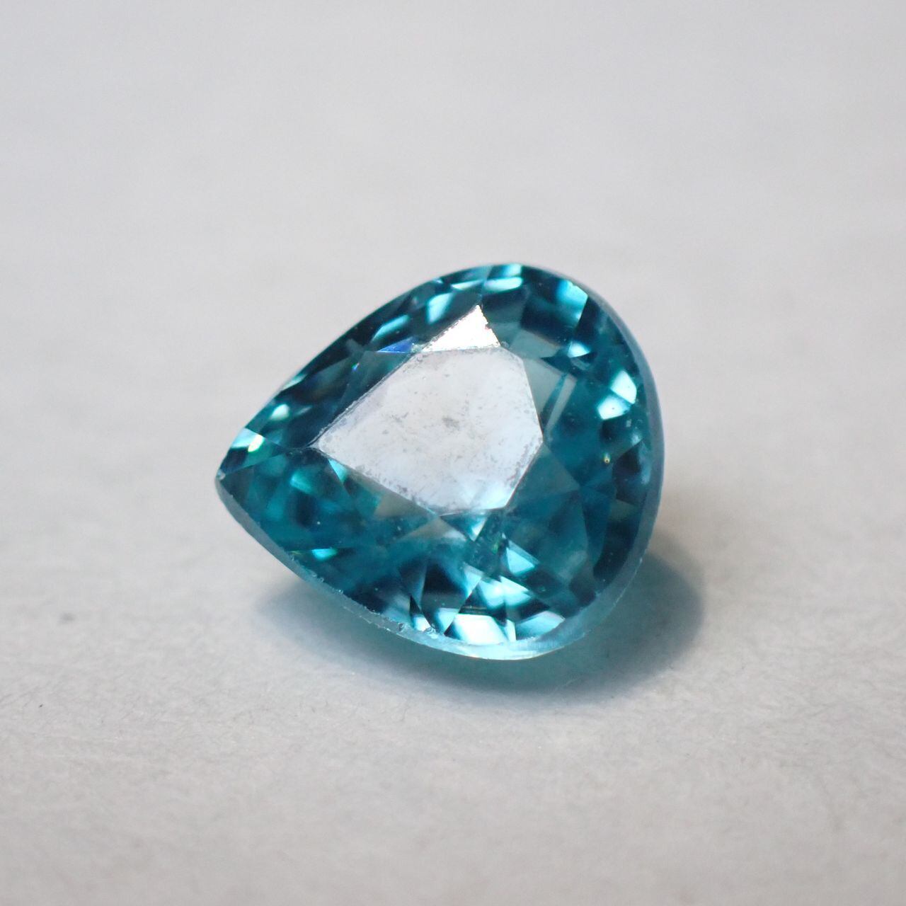カンボジア産ブルージルコン(微蛍光) ペアシェイプカットルース 0.98ct 6.0mm*5.5mm*3.3mm