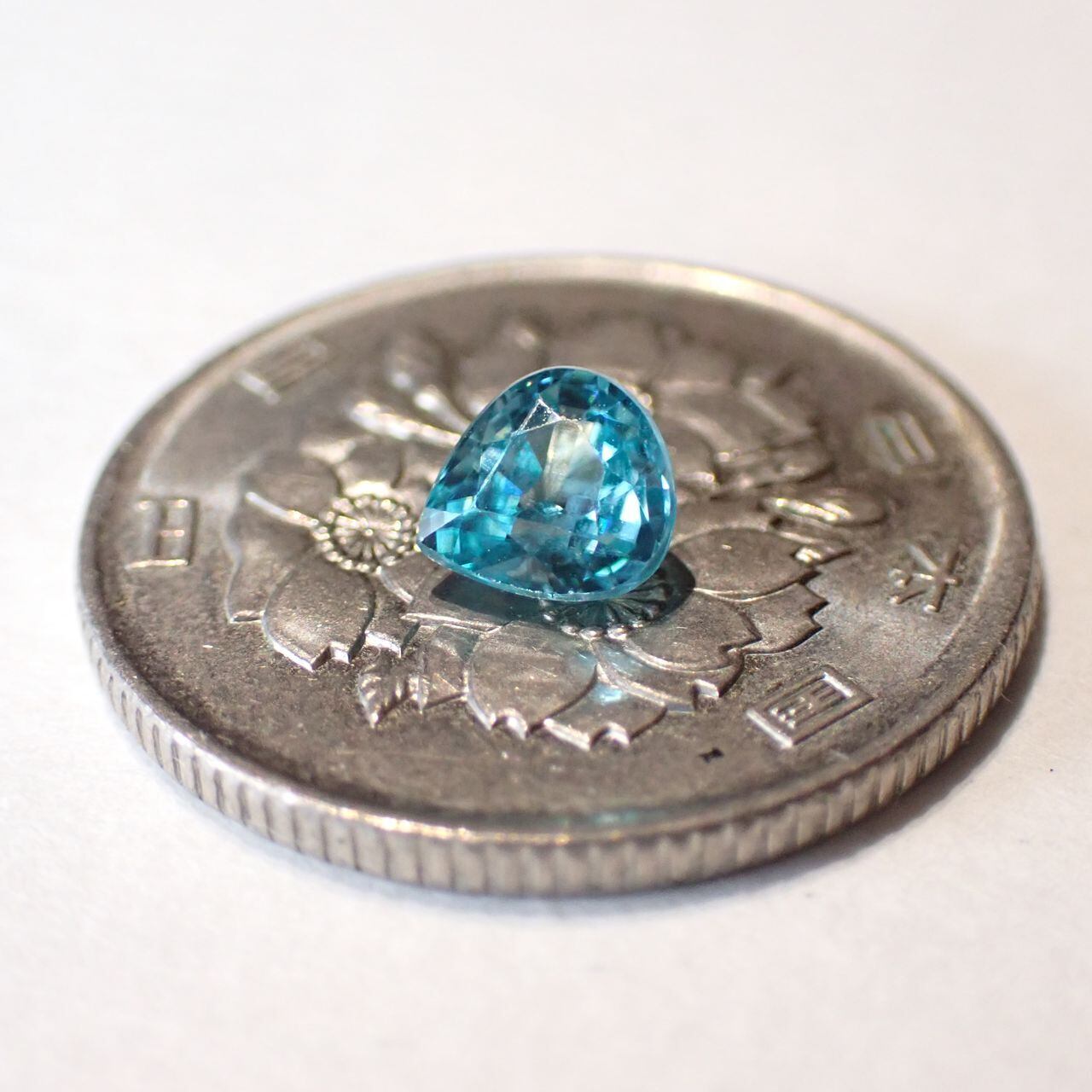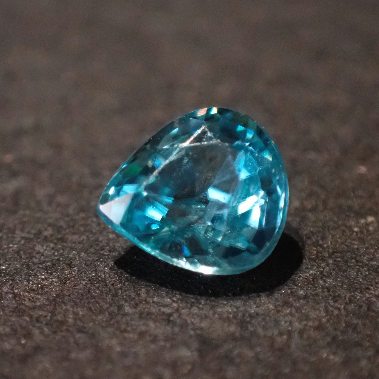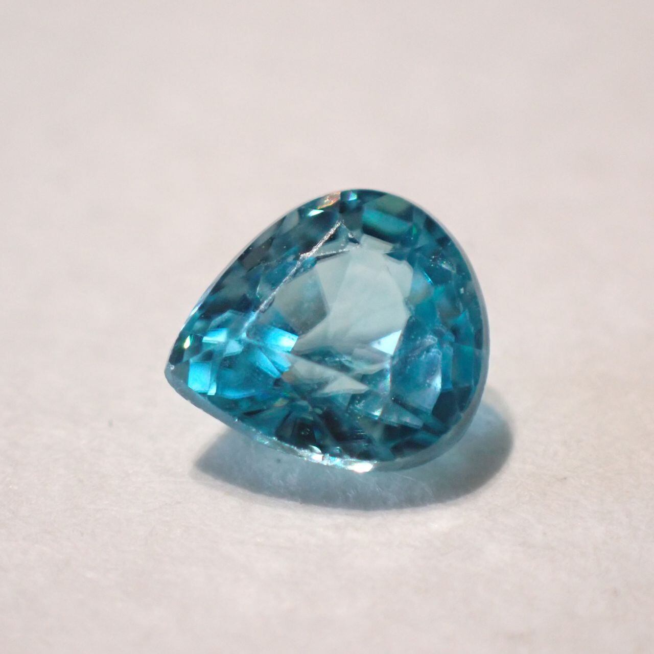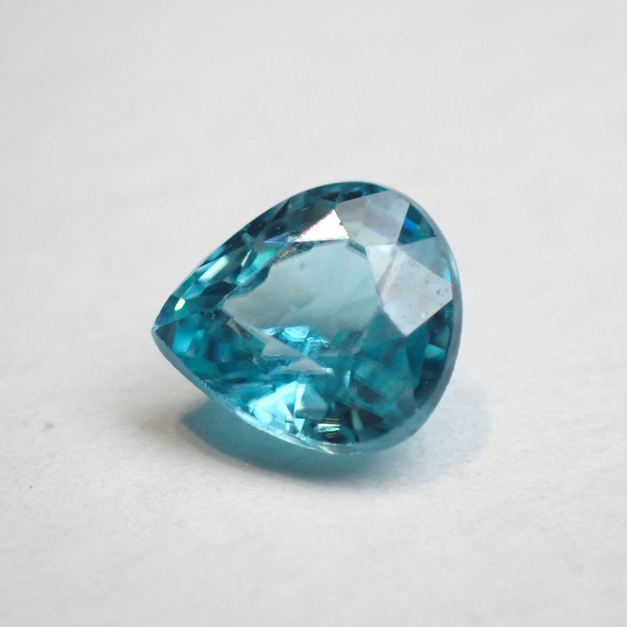 カンボジア産ブルージルコン(微蛍光) ペアシェイプカットルース 0.98ct 6.0mm*5.5mm*3.3mm