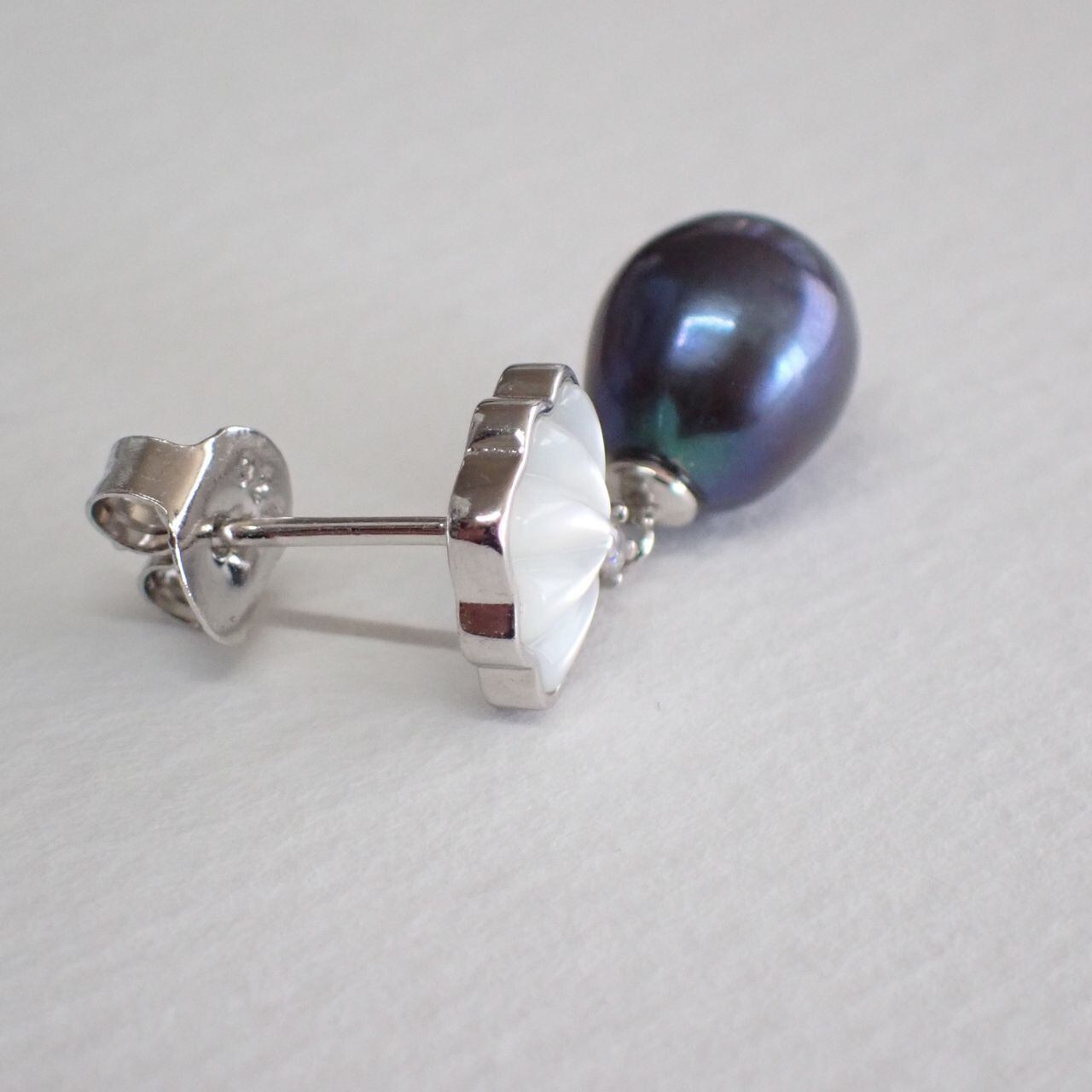 中国産淡水パール/マザーオブパール/cz ピアス・ペンダントセット SV925/K14WGメッキ