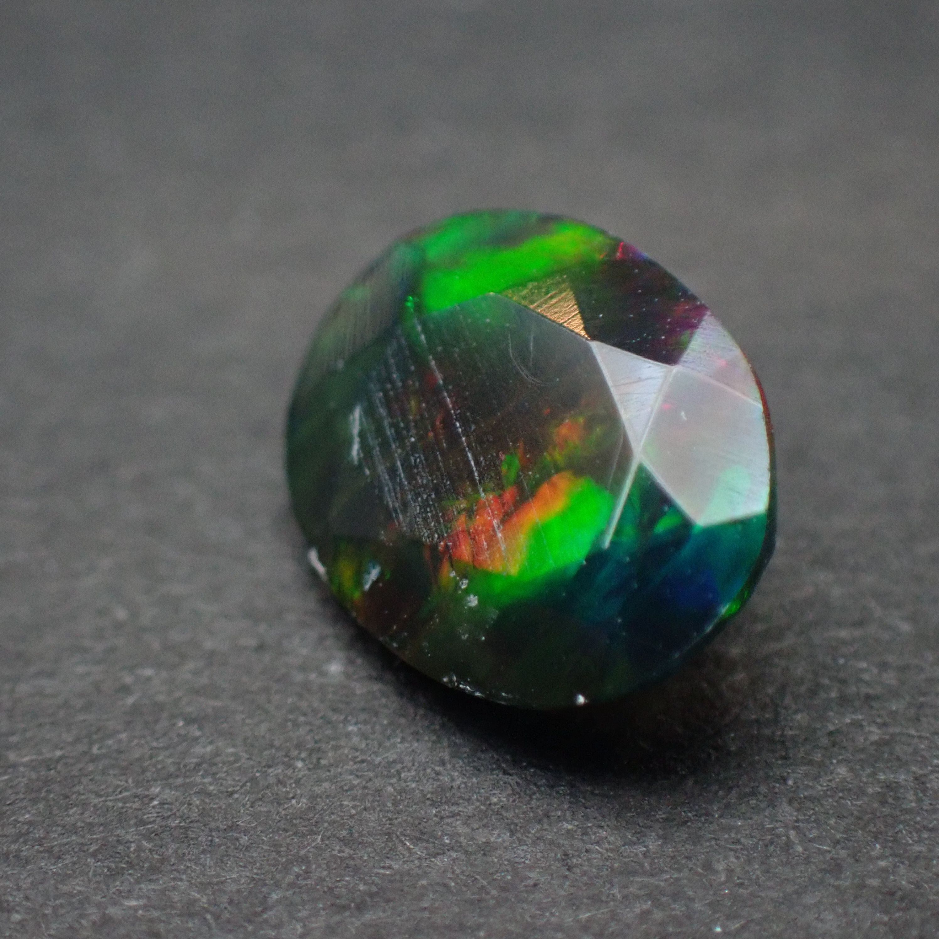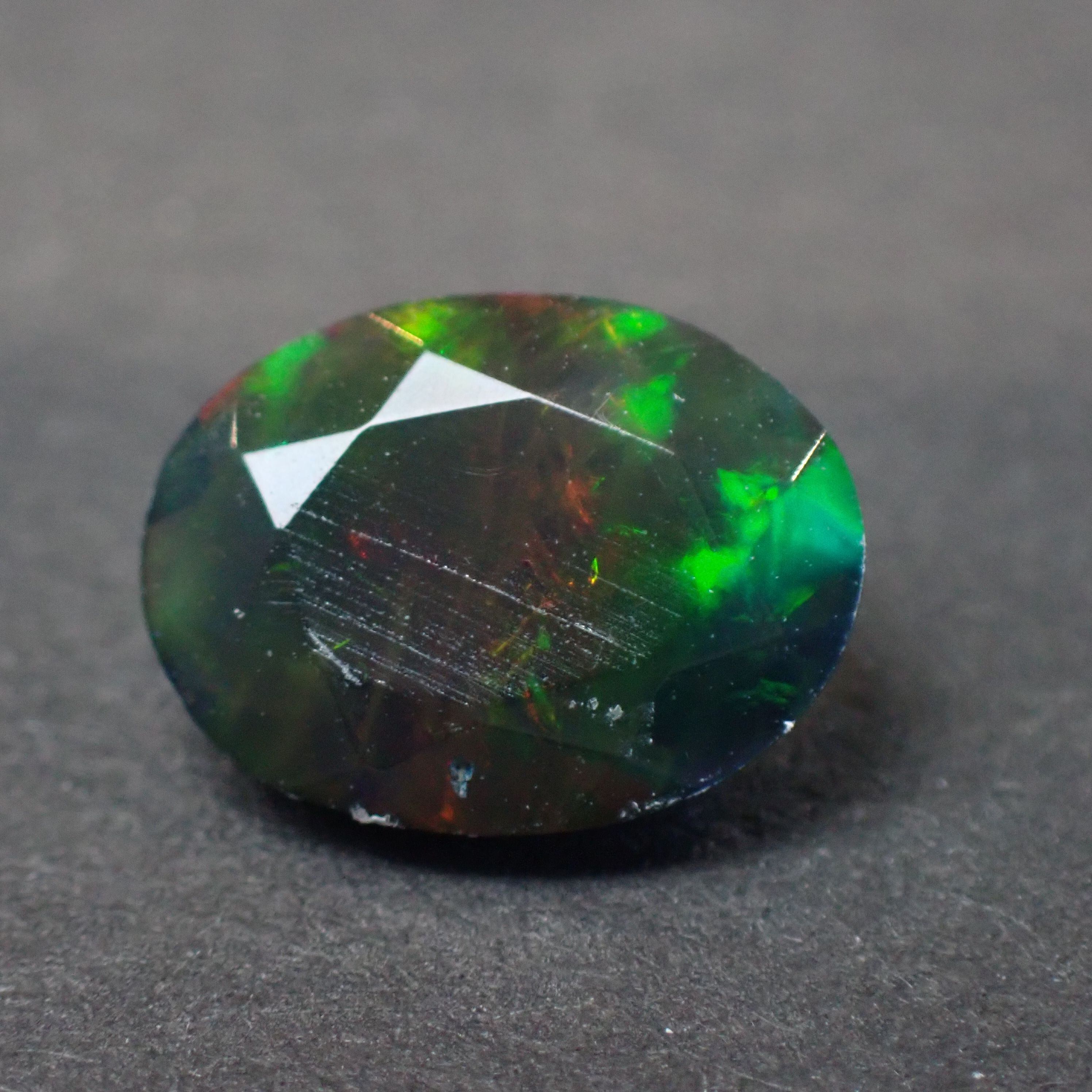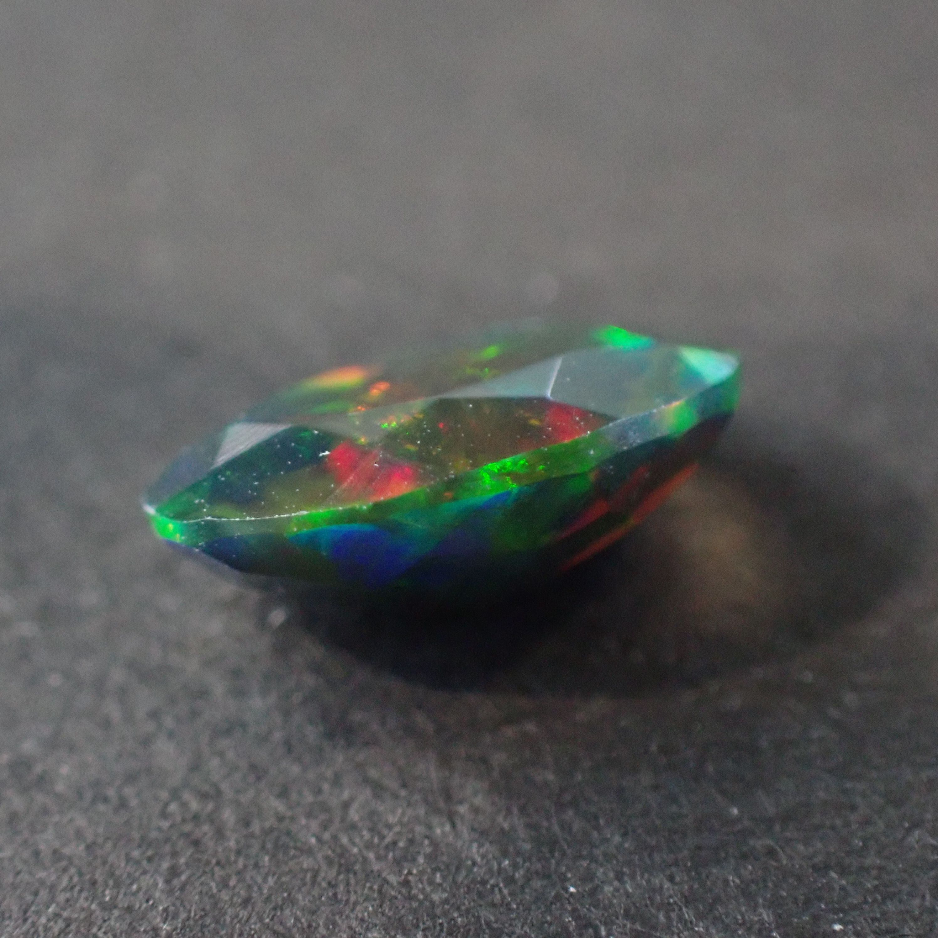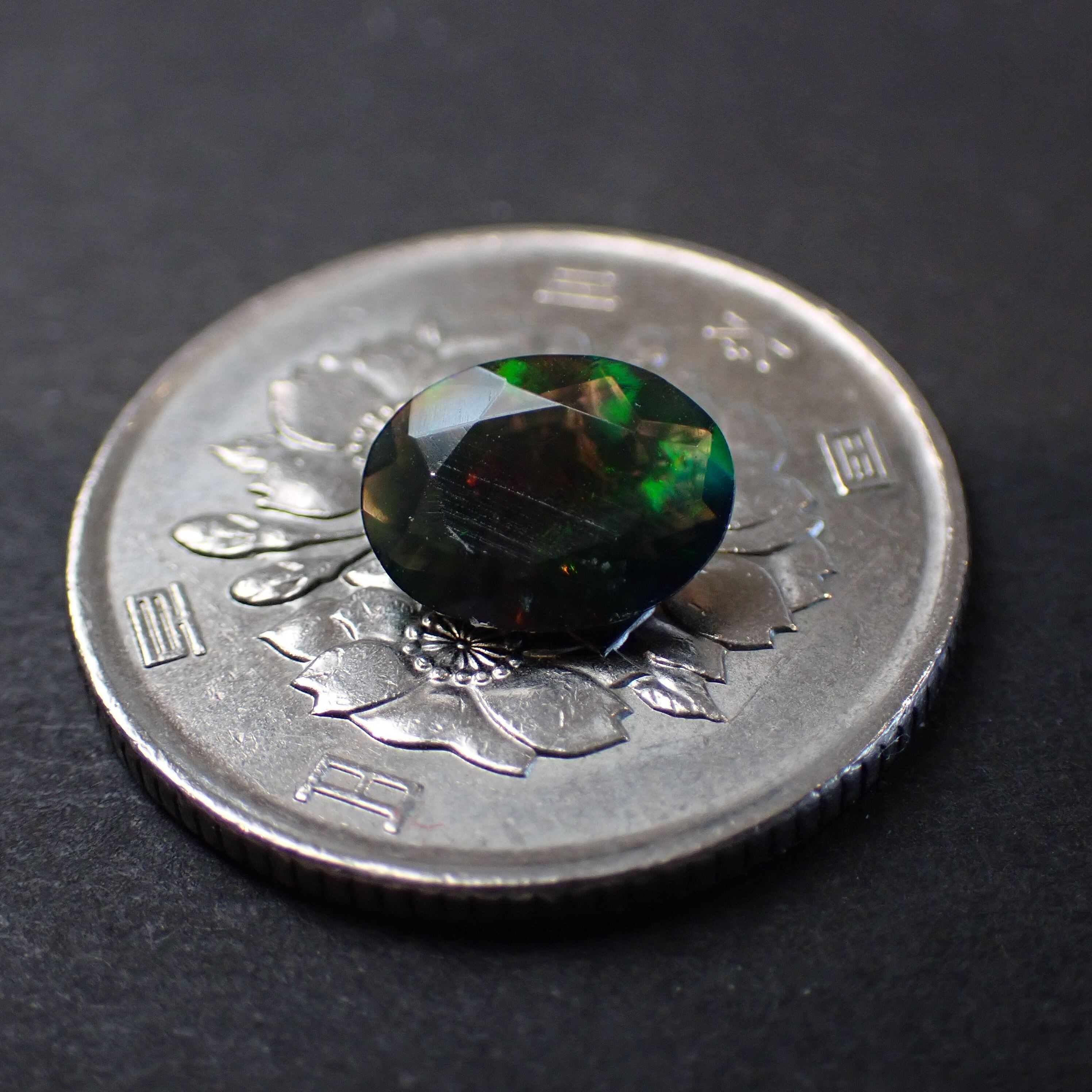 エチオピア産ブラックオパール(煙処理) オーバルカットルース 0.88ct 9.0mm*7.0mm*4.0mm