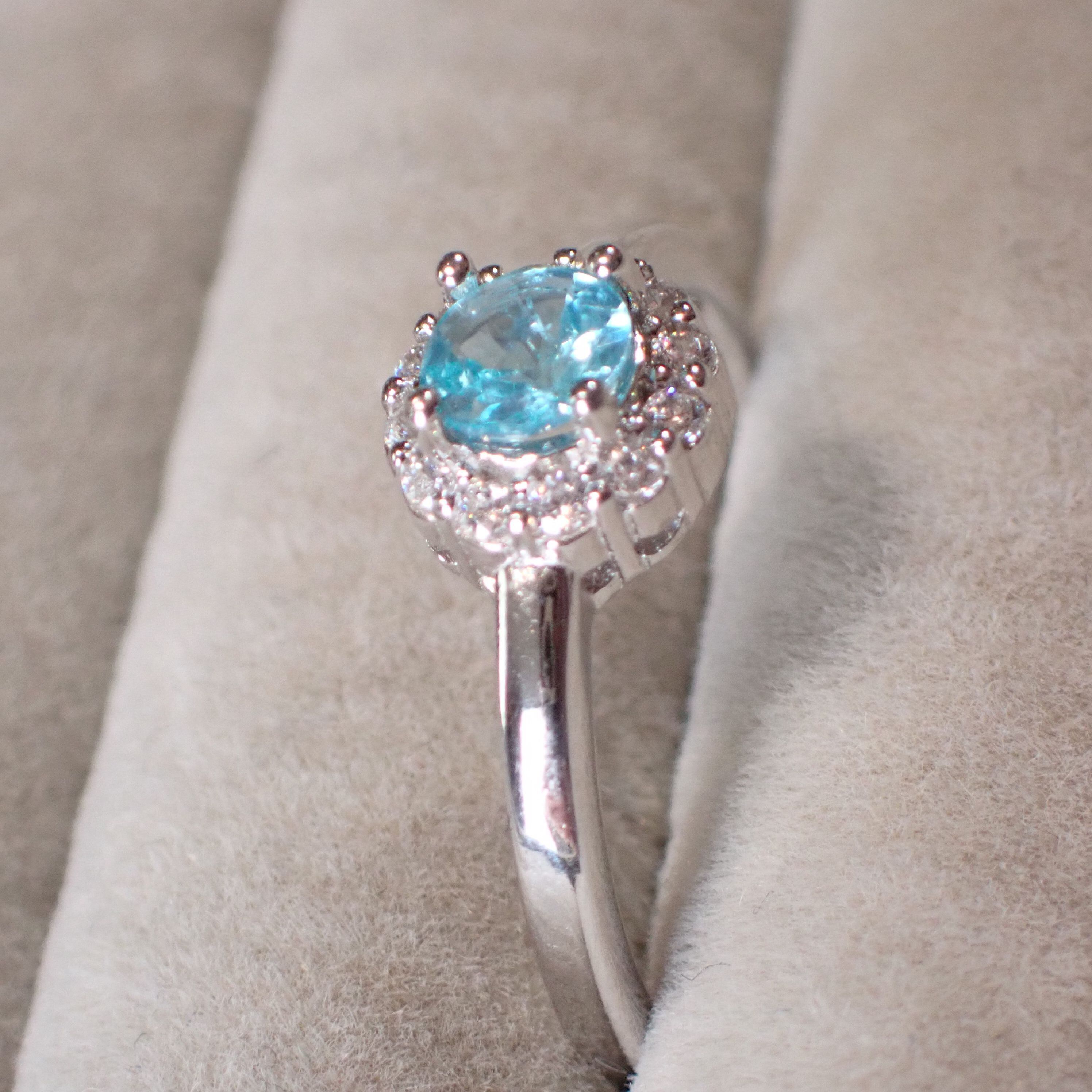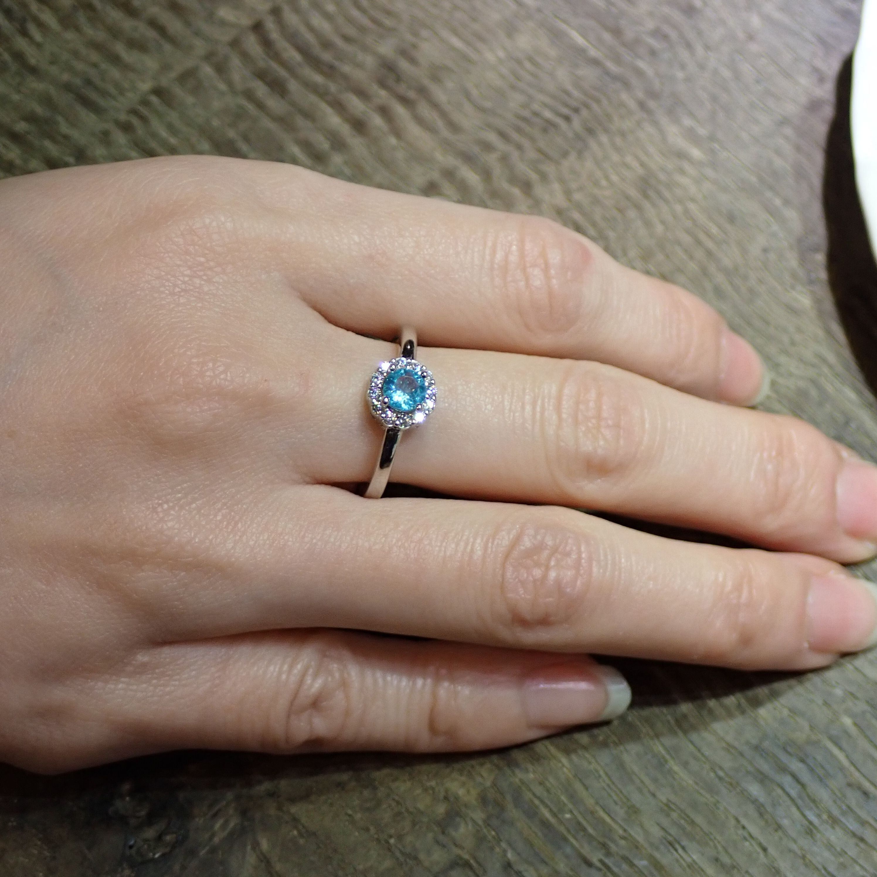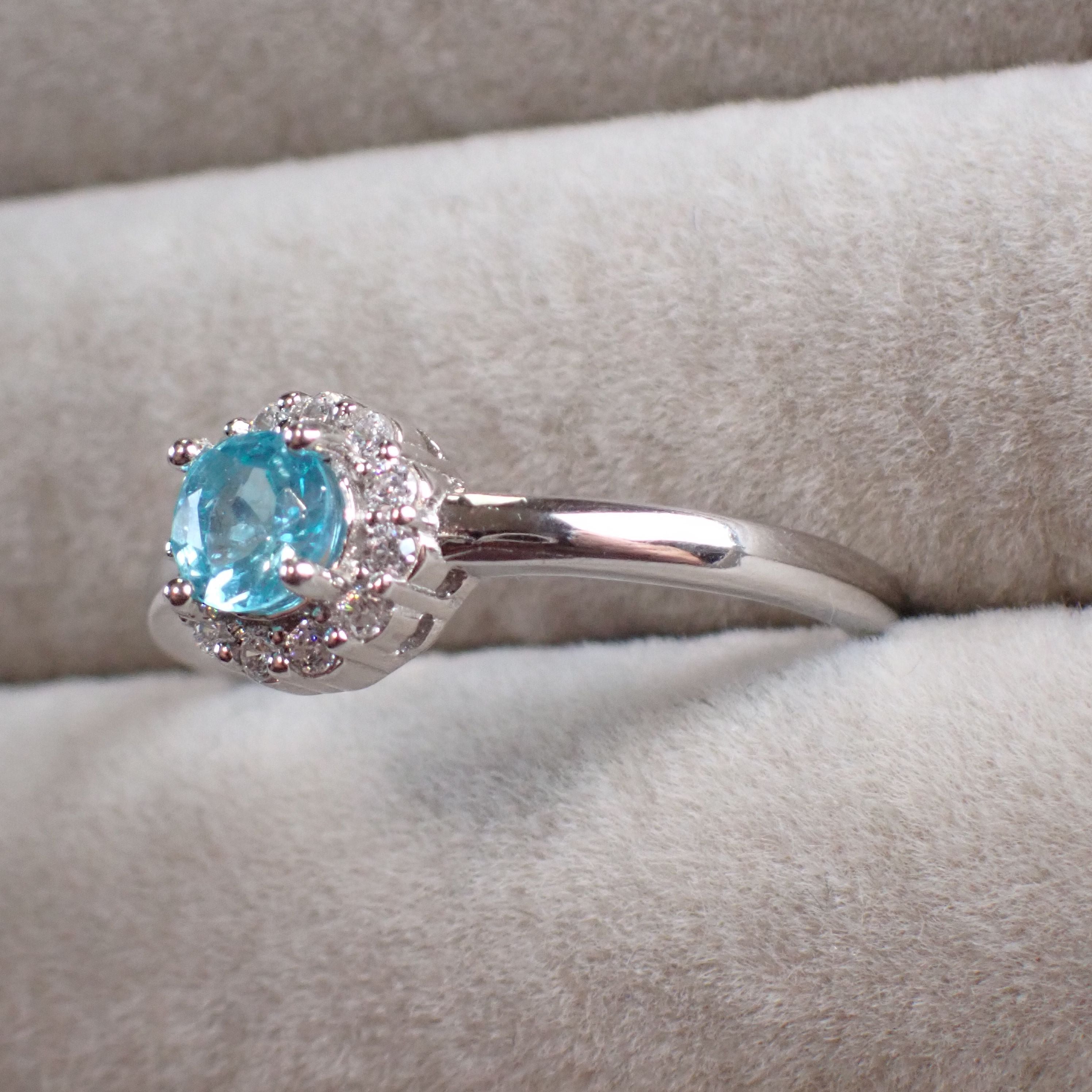 【H様専用】アフリカ産ブルーアパタイト/cz SV925/K14WGメッキリング 2.4g 15号