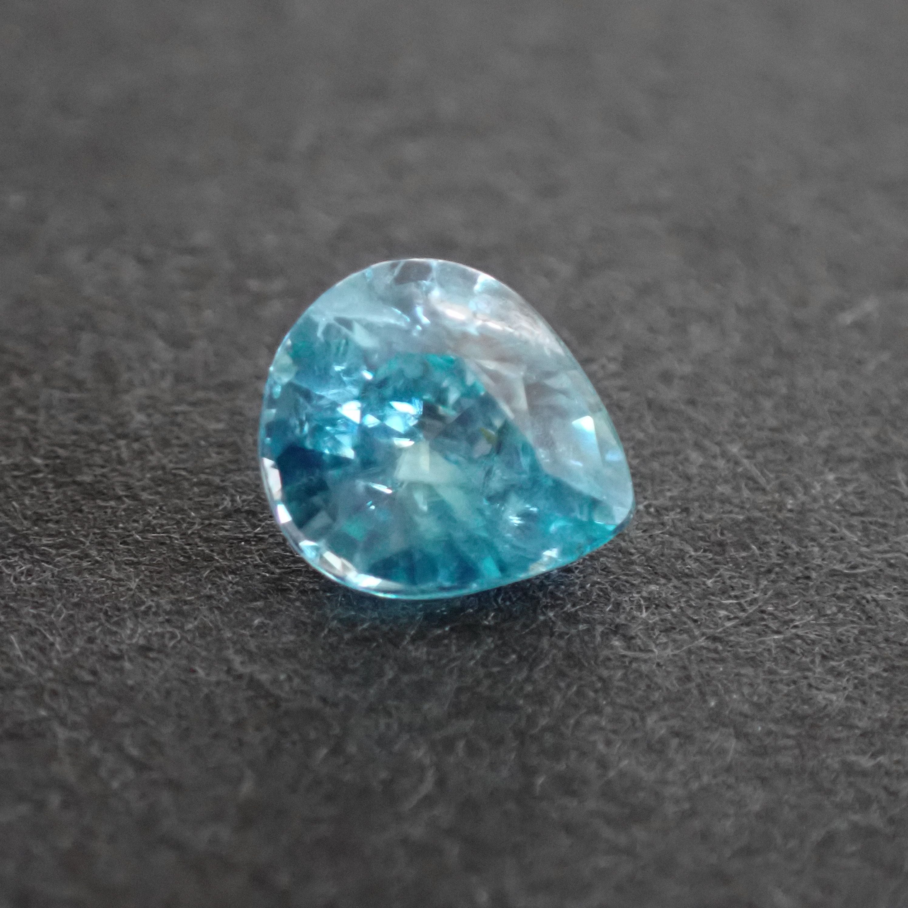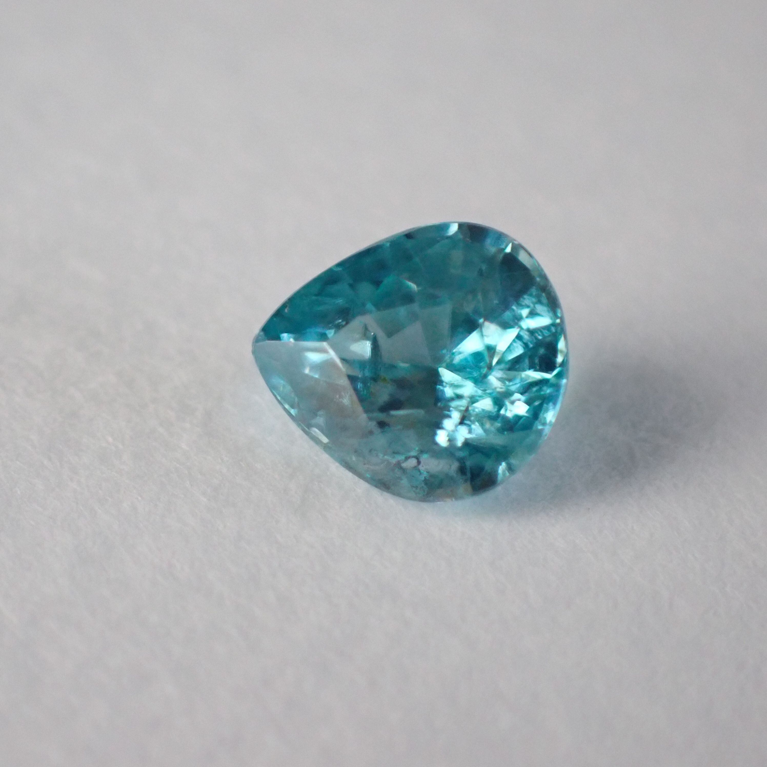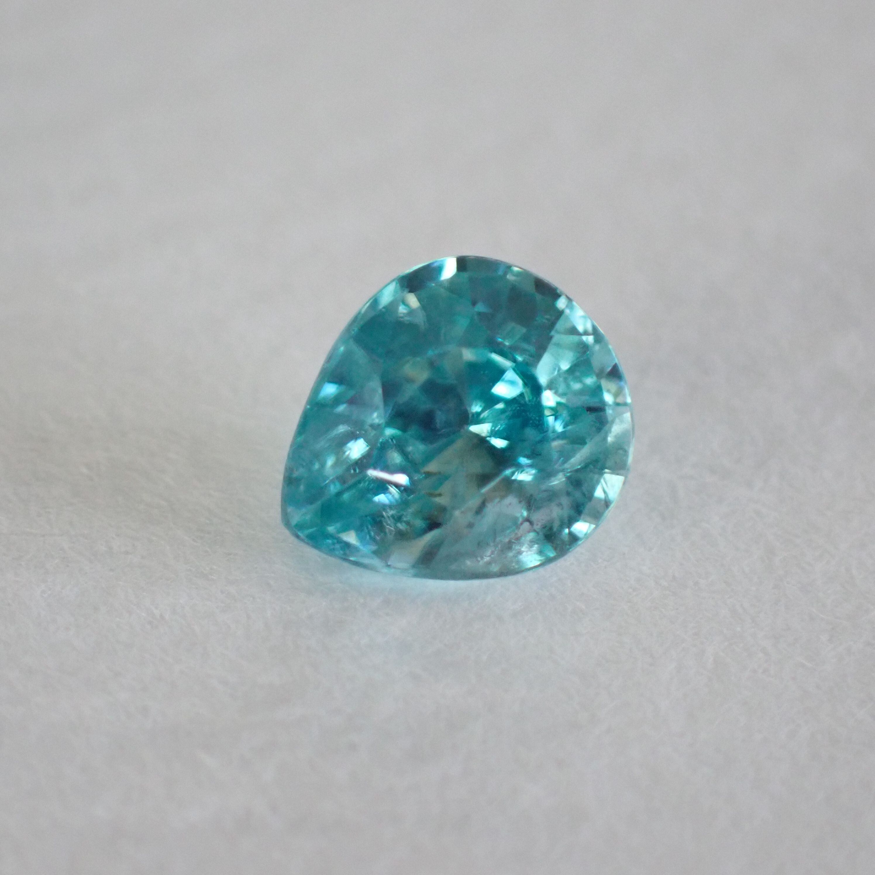 カンボジア産ブルージルコン(微蛍光) ペアシェイプカットルース 0.98ct 6.0mm*5.3mm*3.4mm
