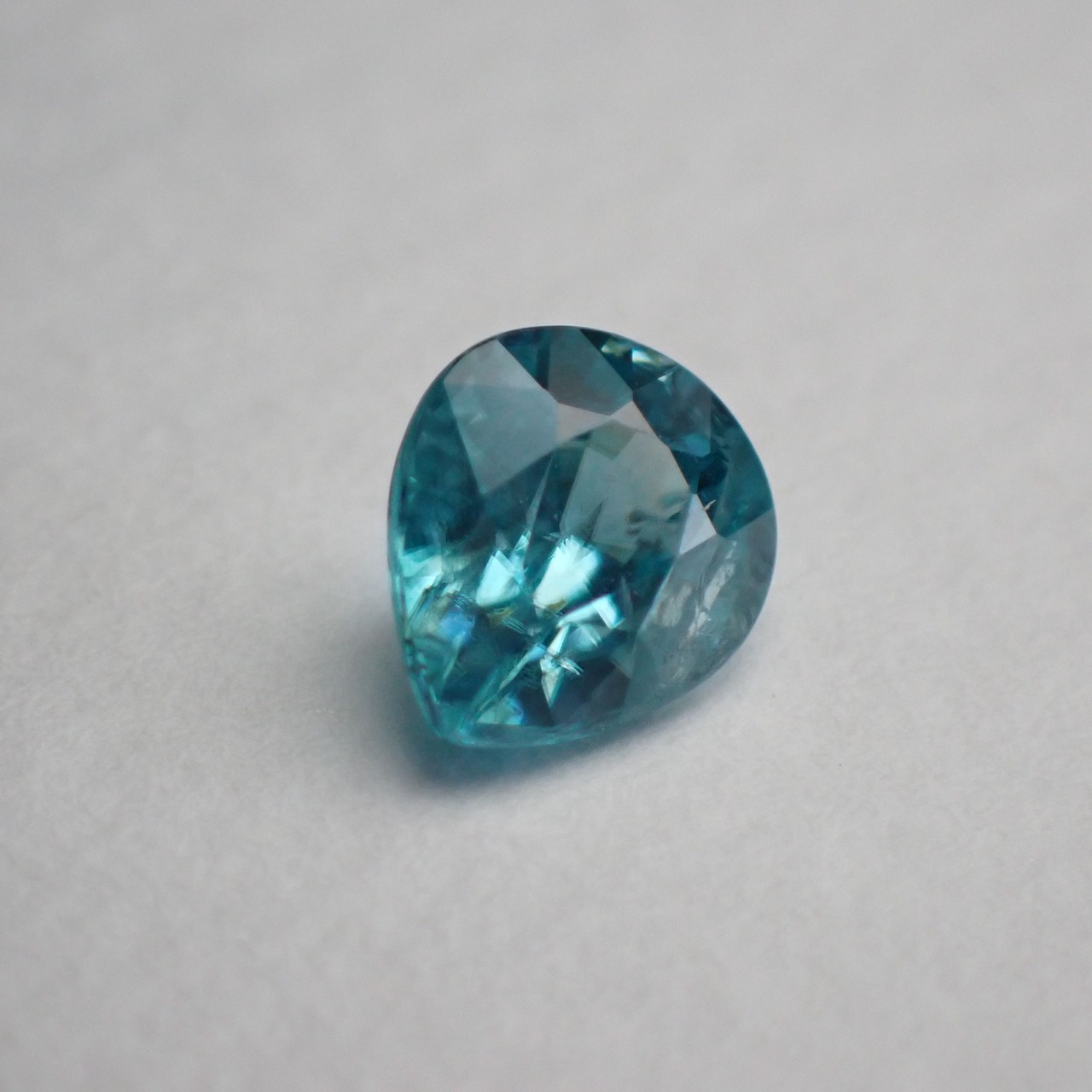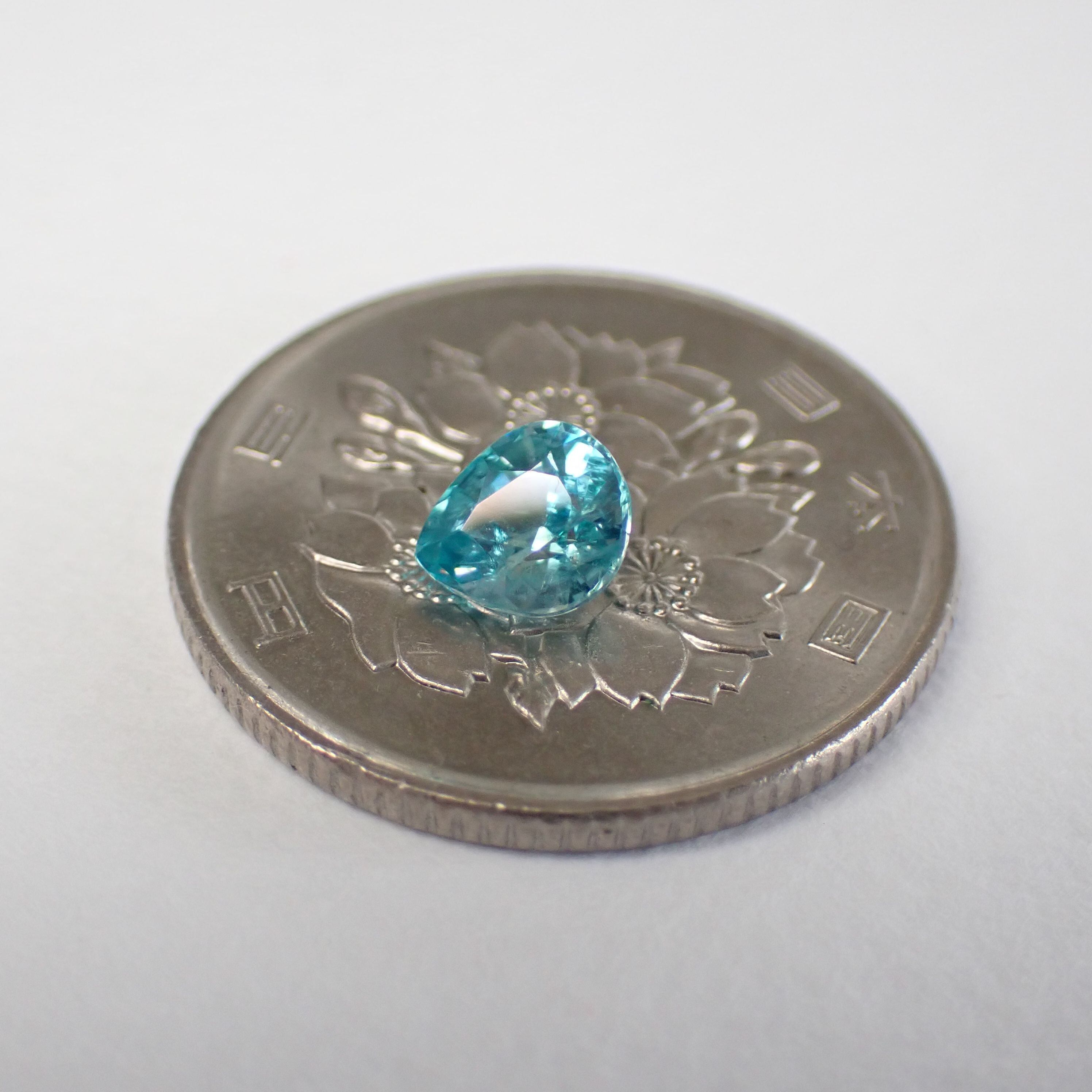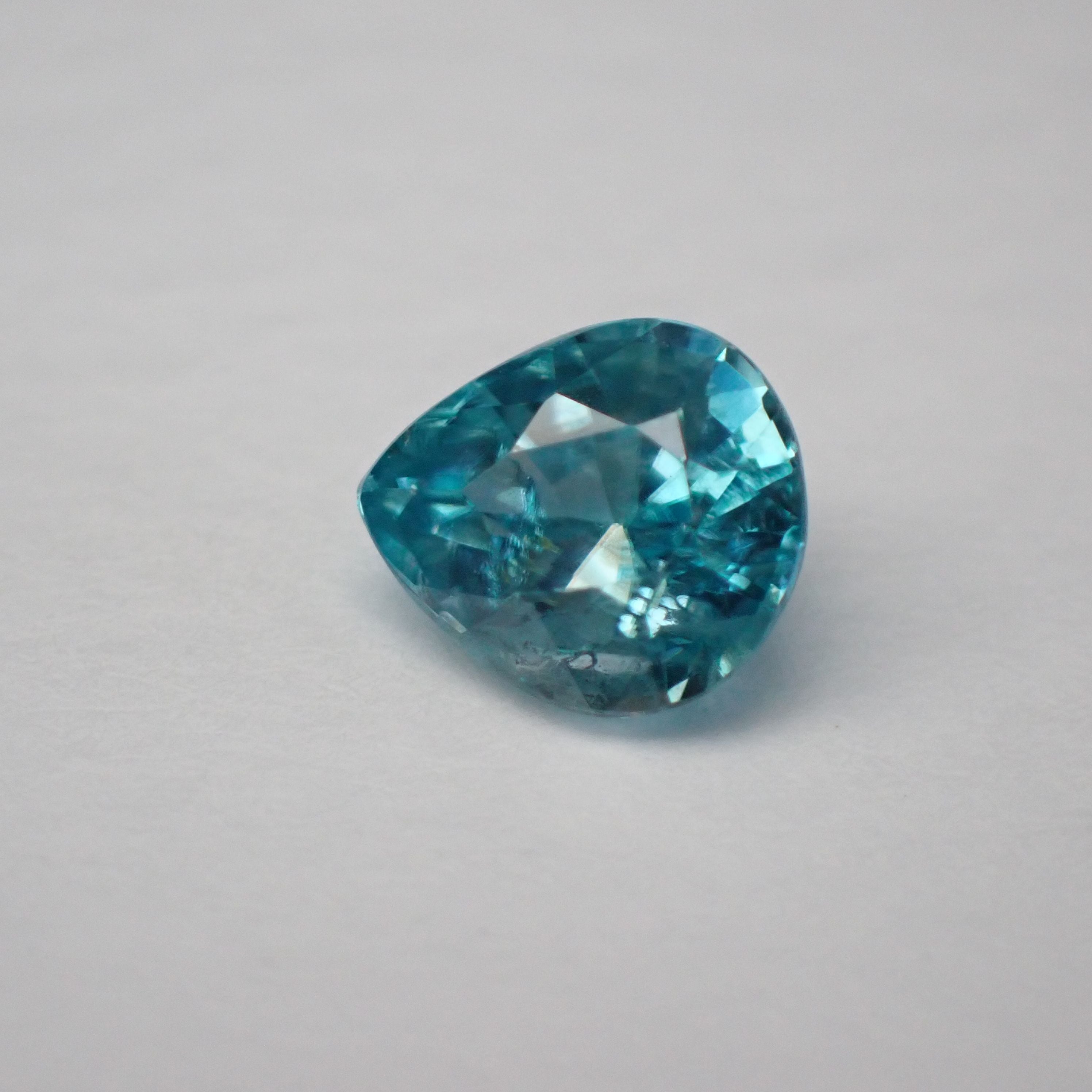 カンボジア産ブルージルコン(微蛍光) ペアシェイプカットルース 0.98ct 6.0mm*5.3mm*3.4mm