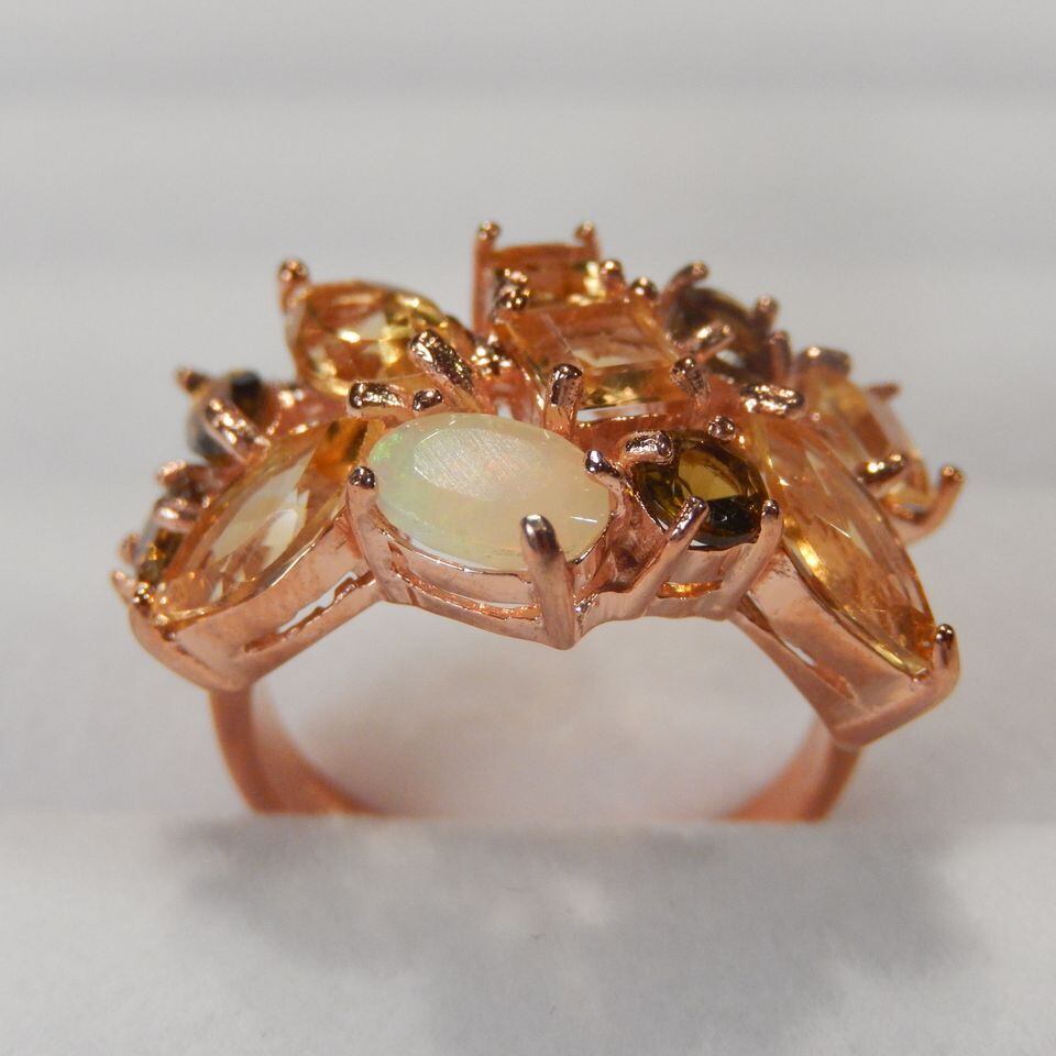 シトリン/オパール/トルマリン SV925/PGメッキリング 4.1g 9.5号/8x4mm