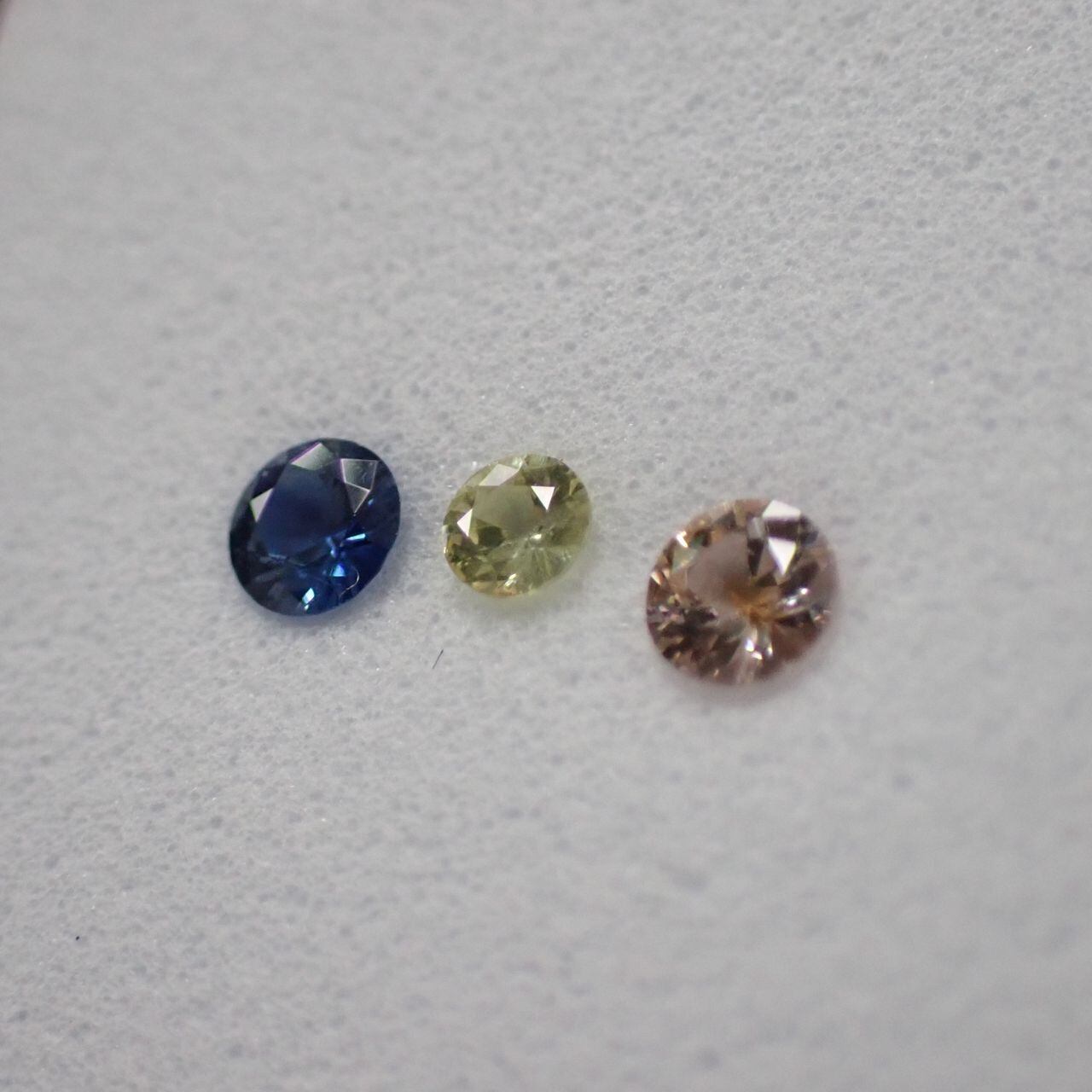 オレンジッシュピンク、ファンシーイエロー、ロイヤルブルーの3色の組み合わせはサファイアのカラーバリエーションを象徴する組み合わせです。