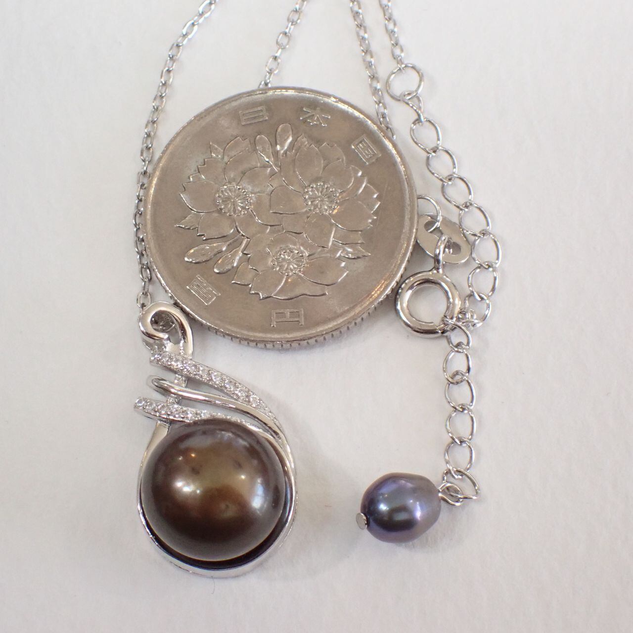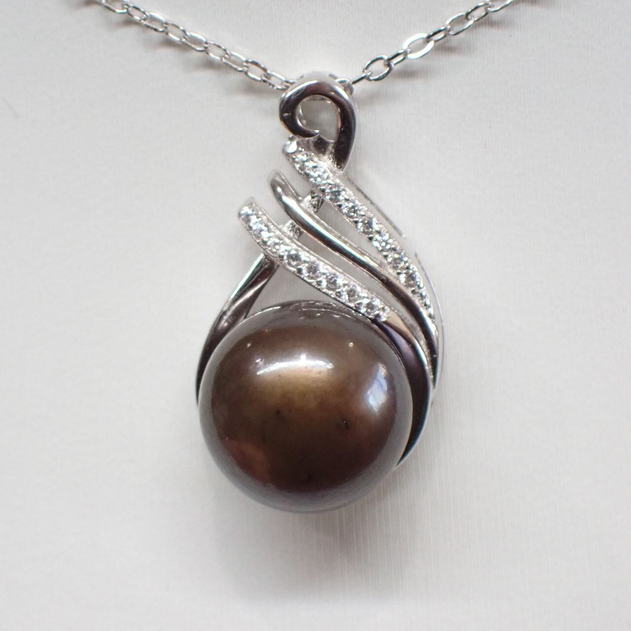淡水パール/cz SV925/K14WGメッキペンダント 5.1g /42cm