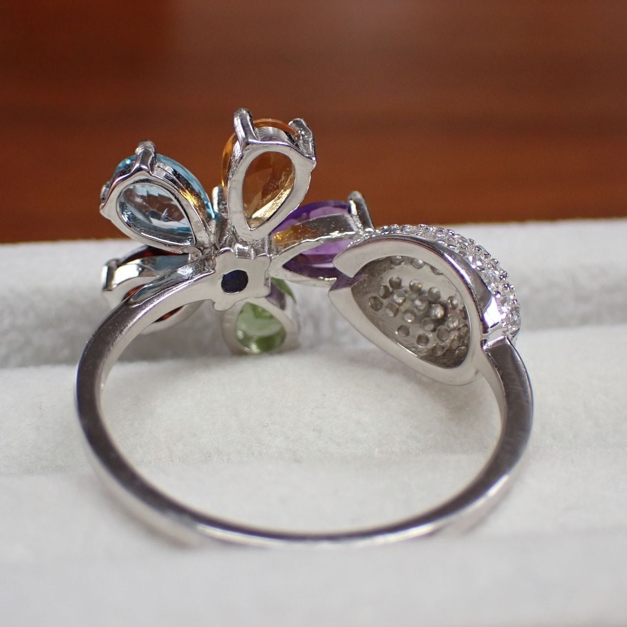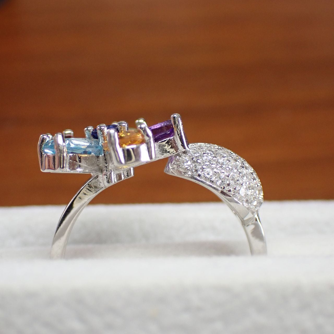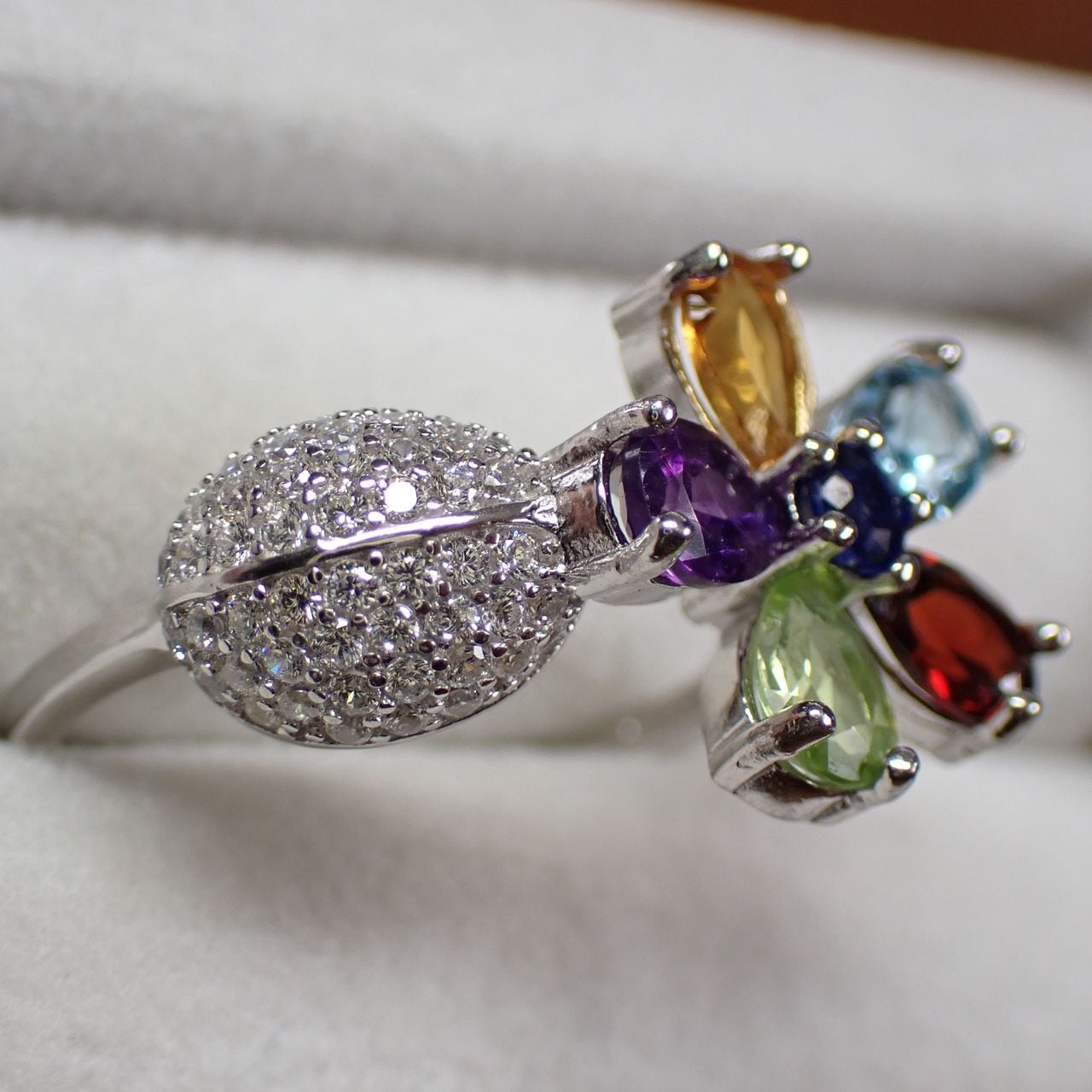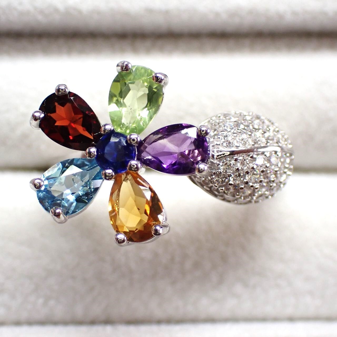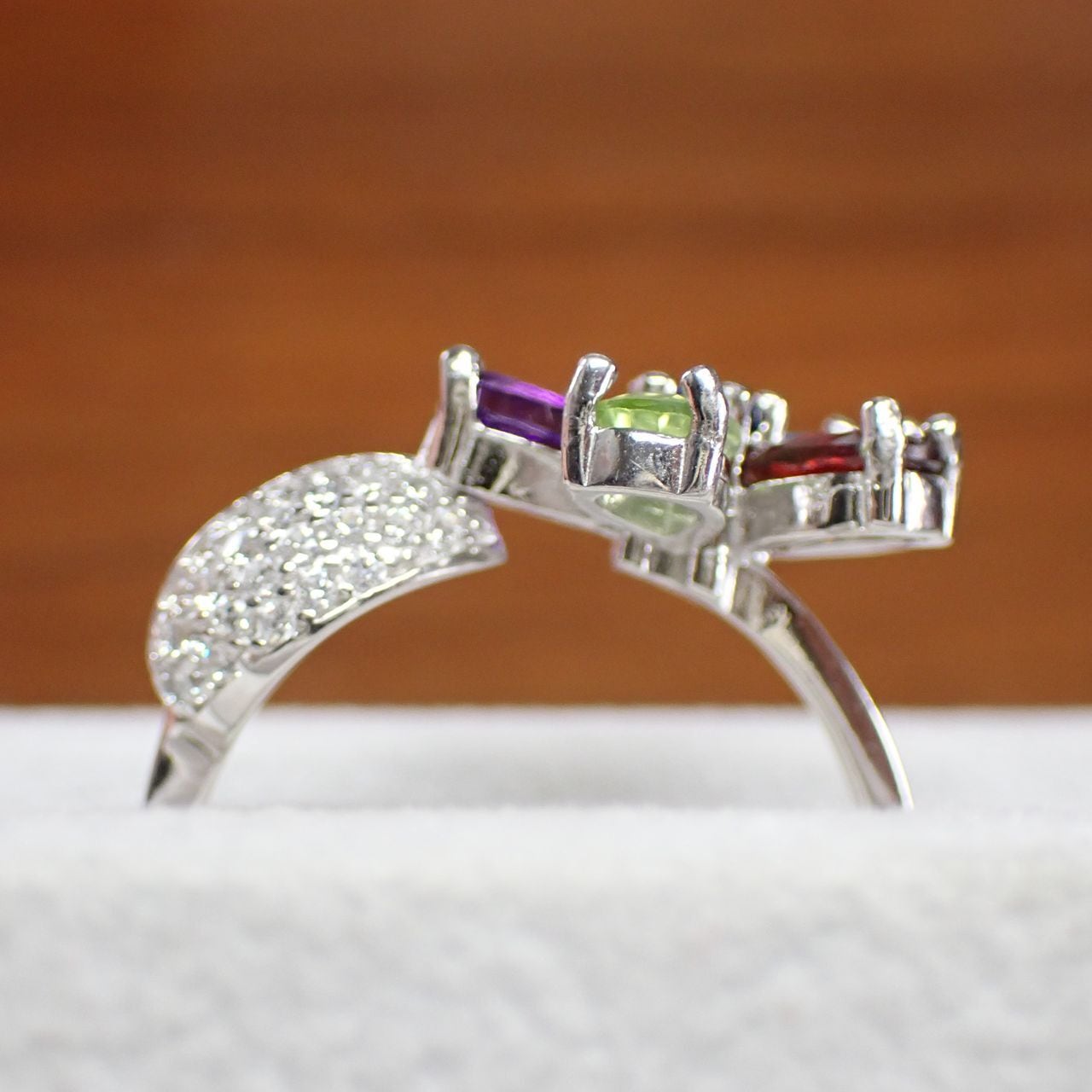 アメジスト/シトリン/ガーネット/ペリドット/ブルートパーズ/cz SV925/K14WGメッキ リング 3.5g 17号