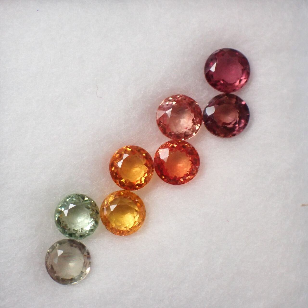 タンザニア産サファイア(Be拡散処理含む)8個セット ラウンドカットルース 合計1.3ct 3 mm